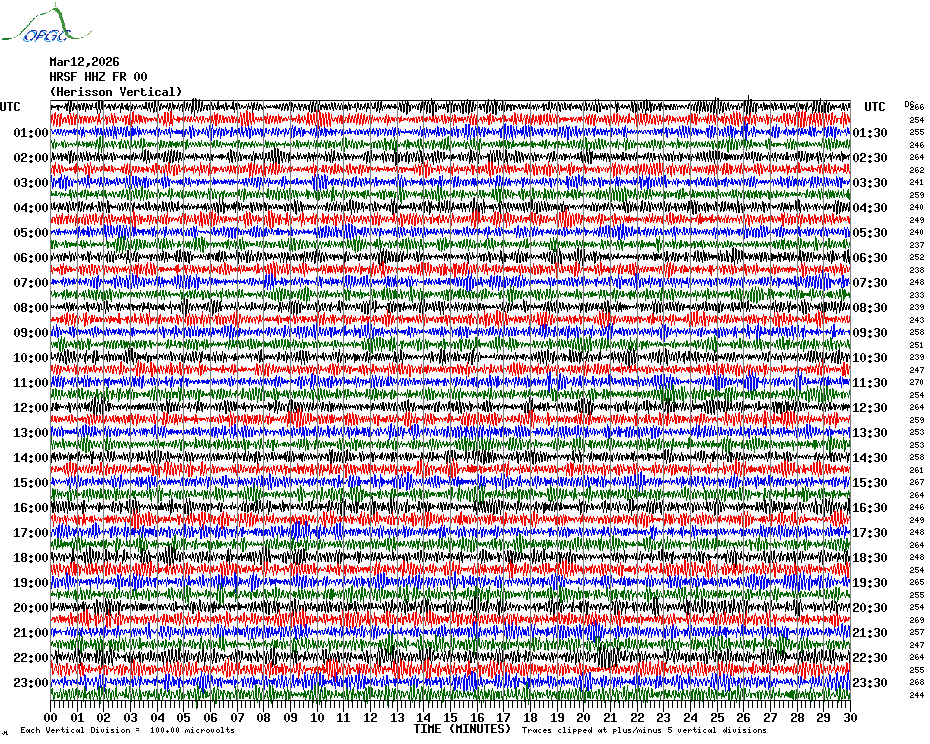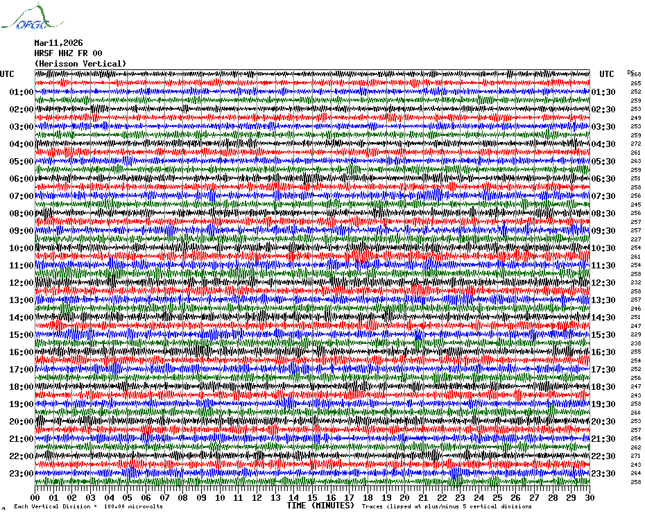 Sismogrammes du Réseau Sismologique Auvergne par fenêtre de 24h