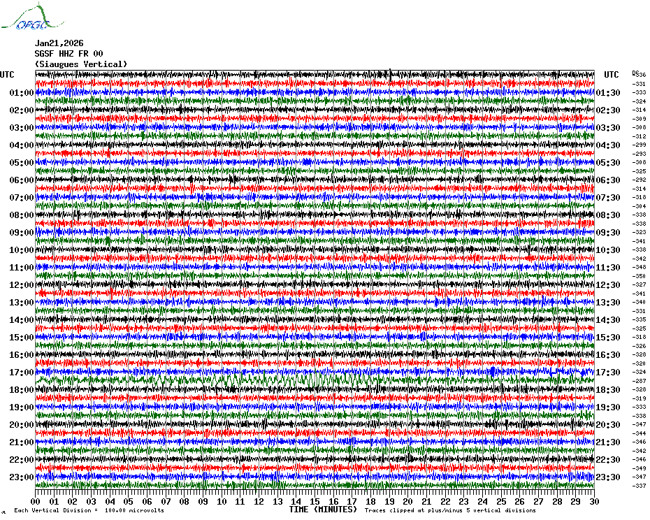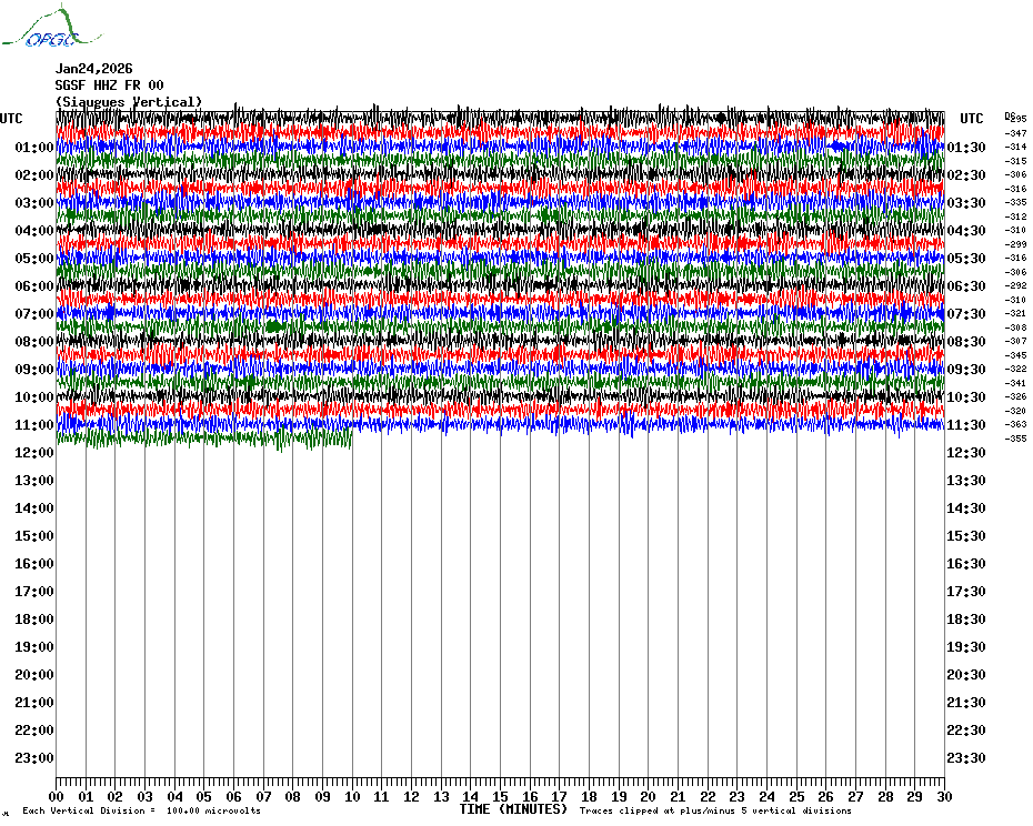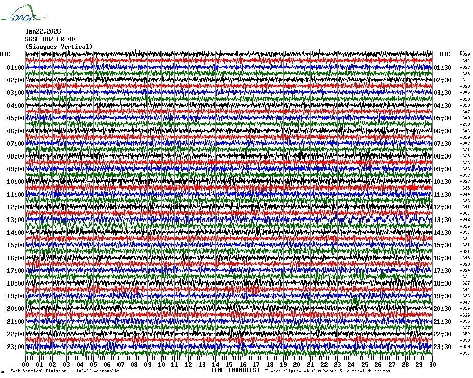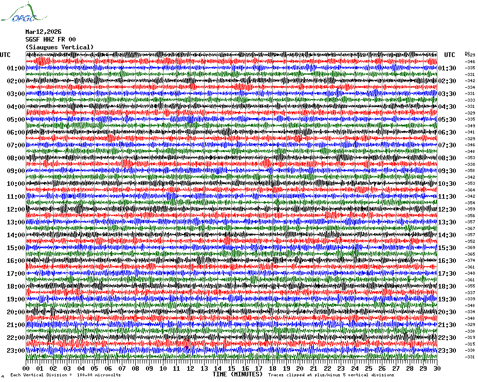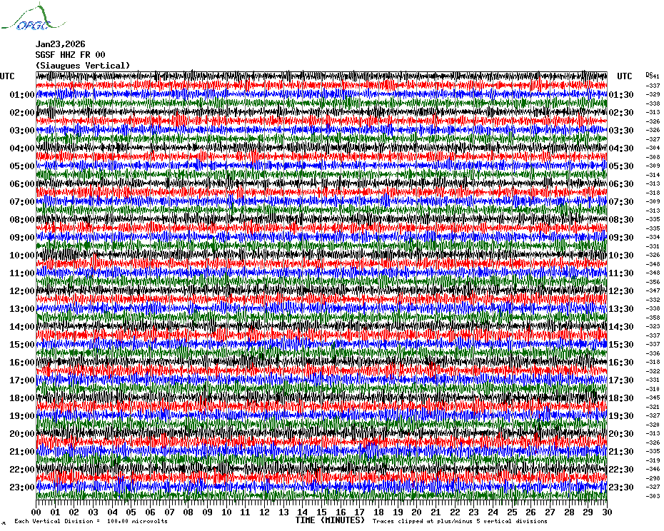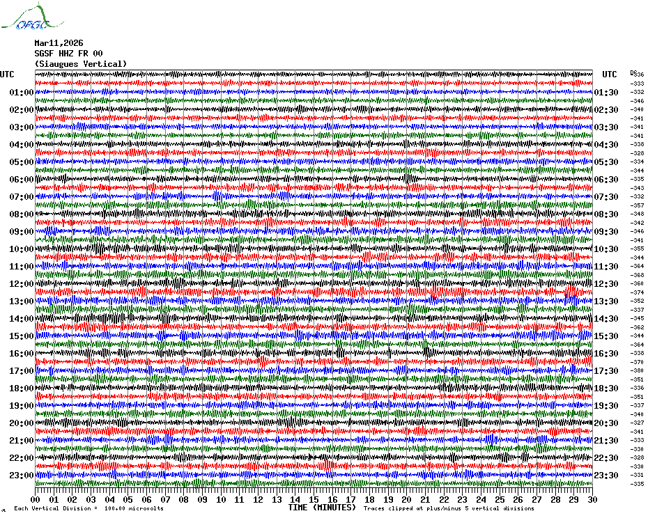 Sismogrammes du Réseau Sismologique Auvergne par fenêtre de 24h