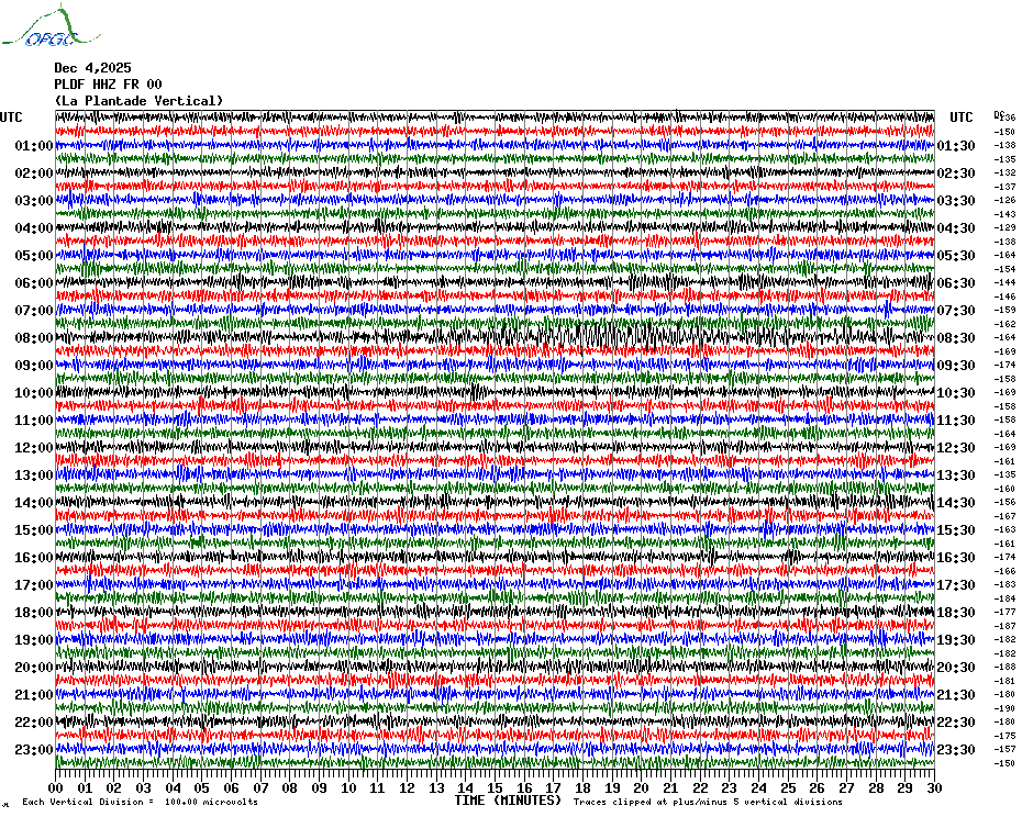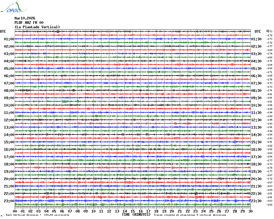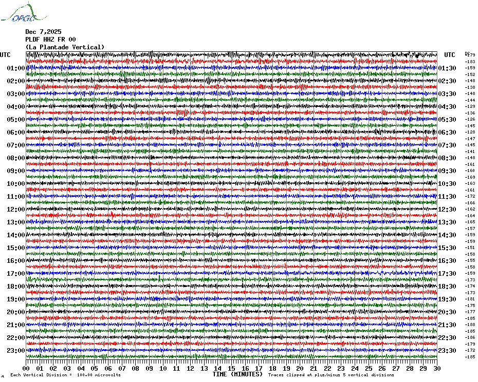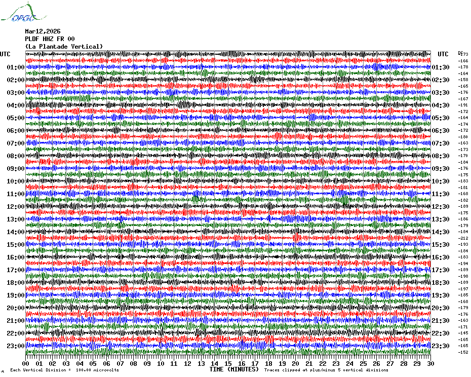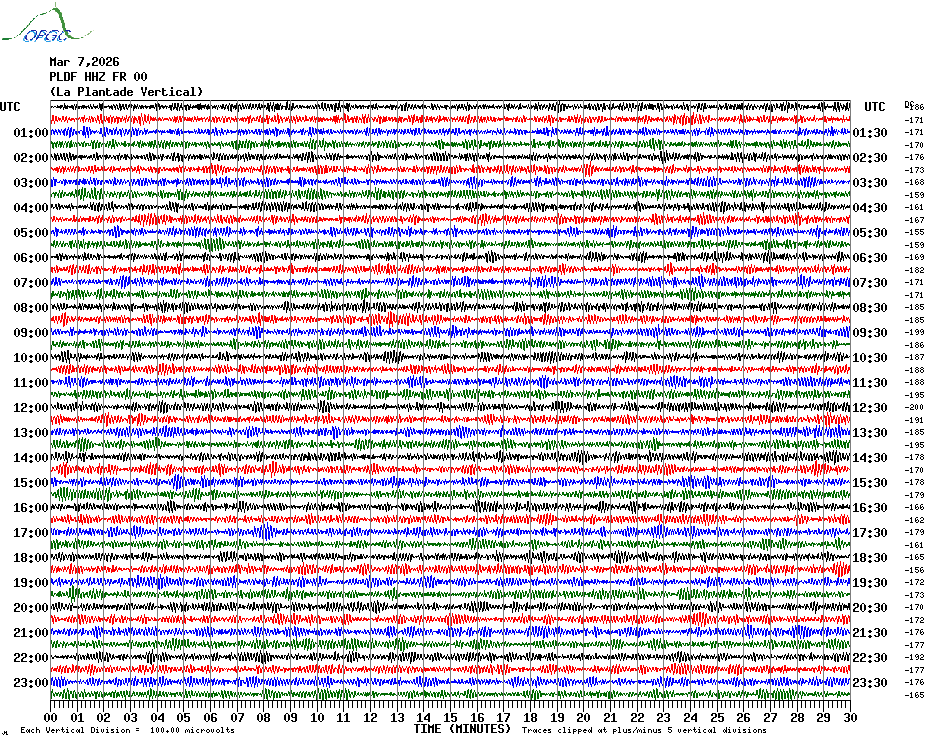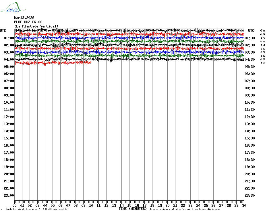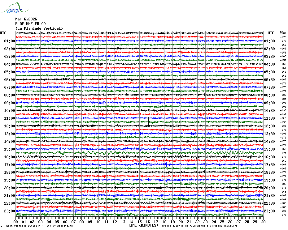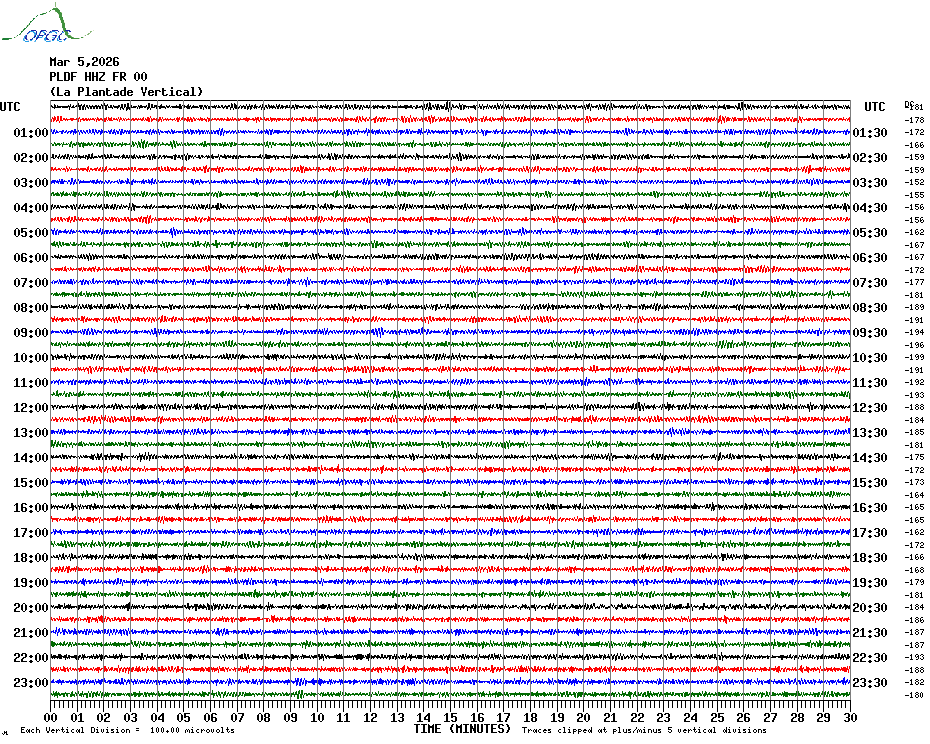 Sismogrammes du Réseau Sismologique Auvergne par fenêtre de 24h