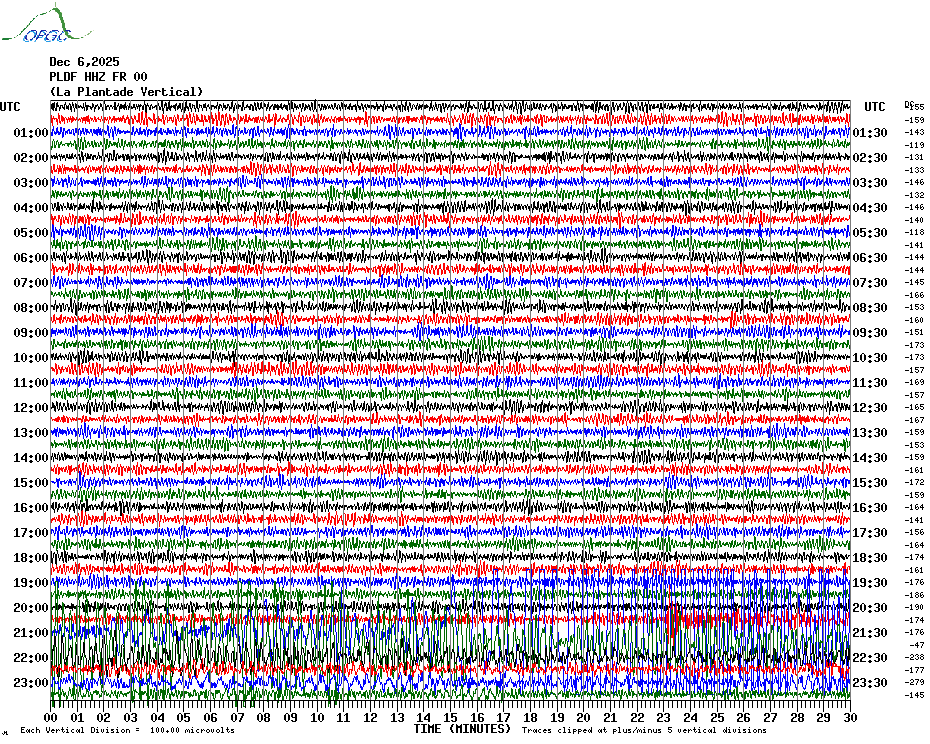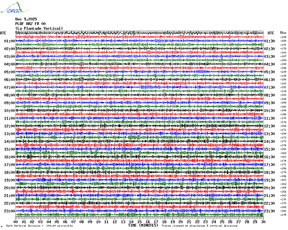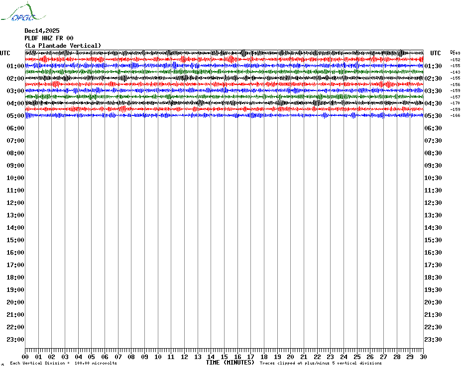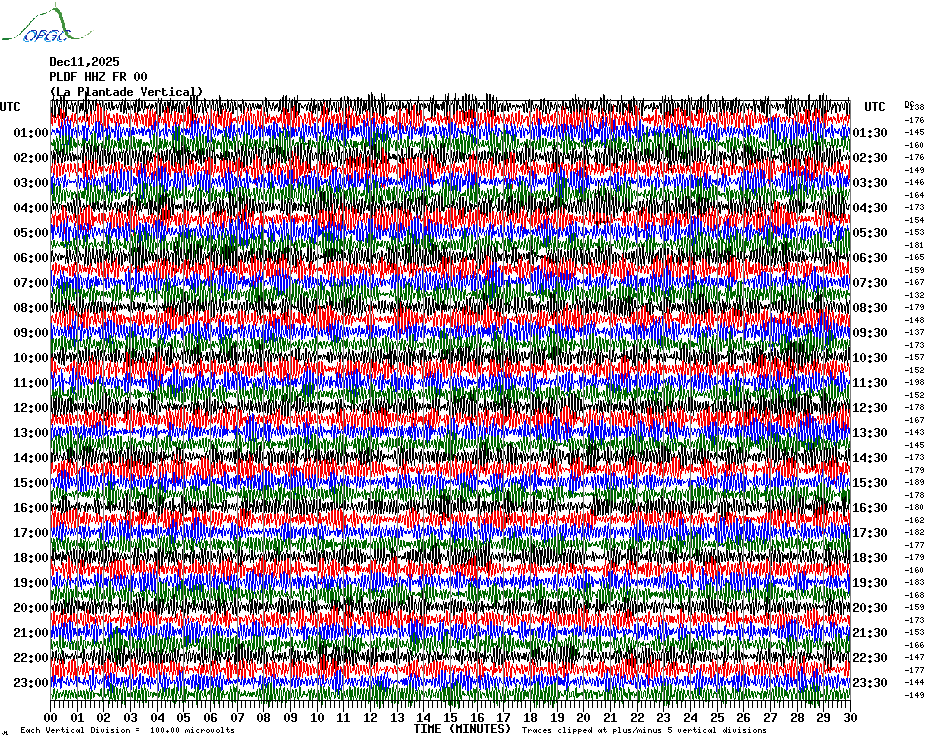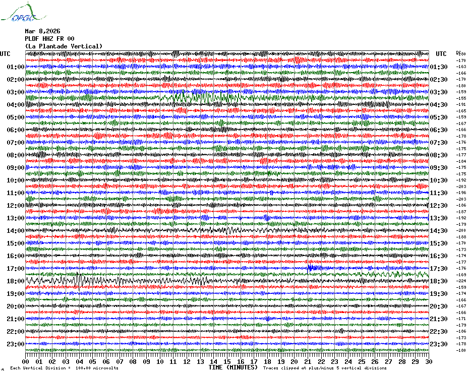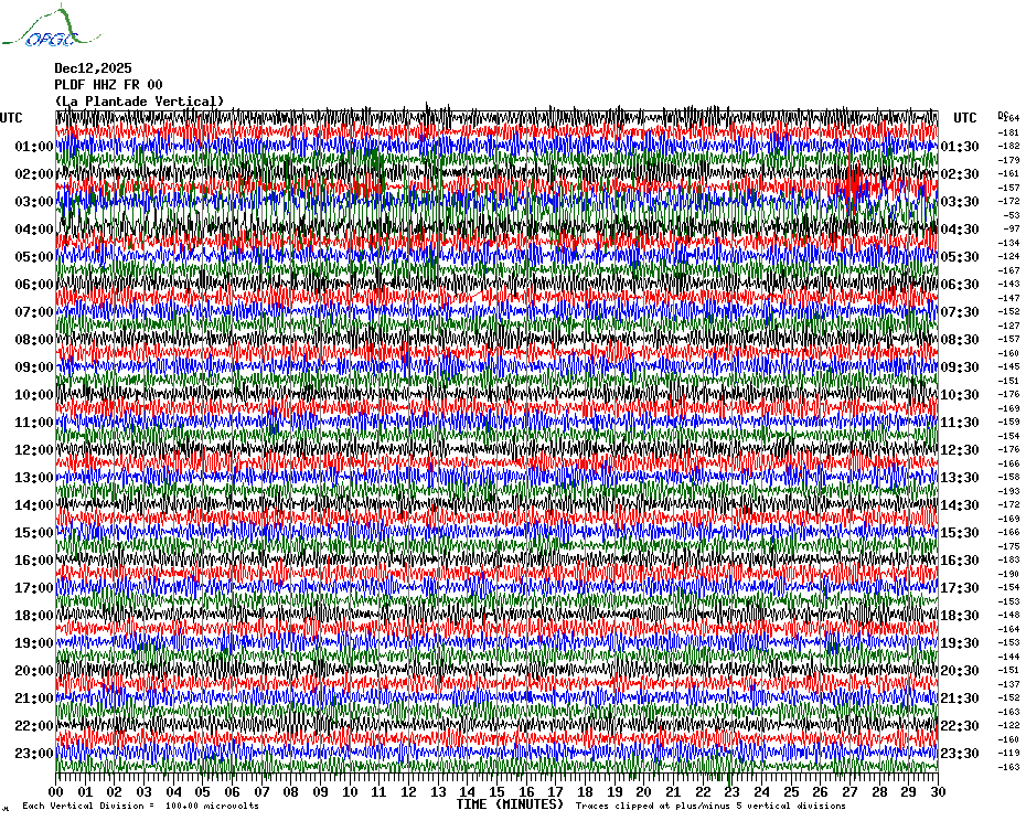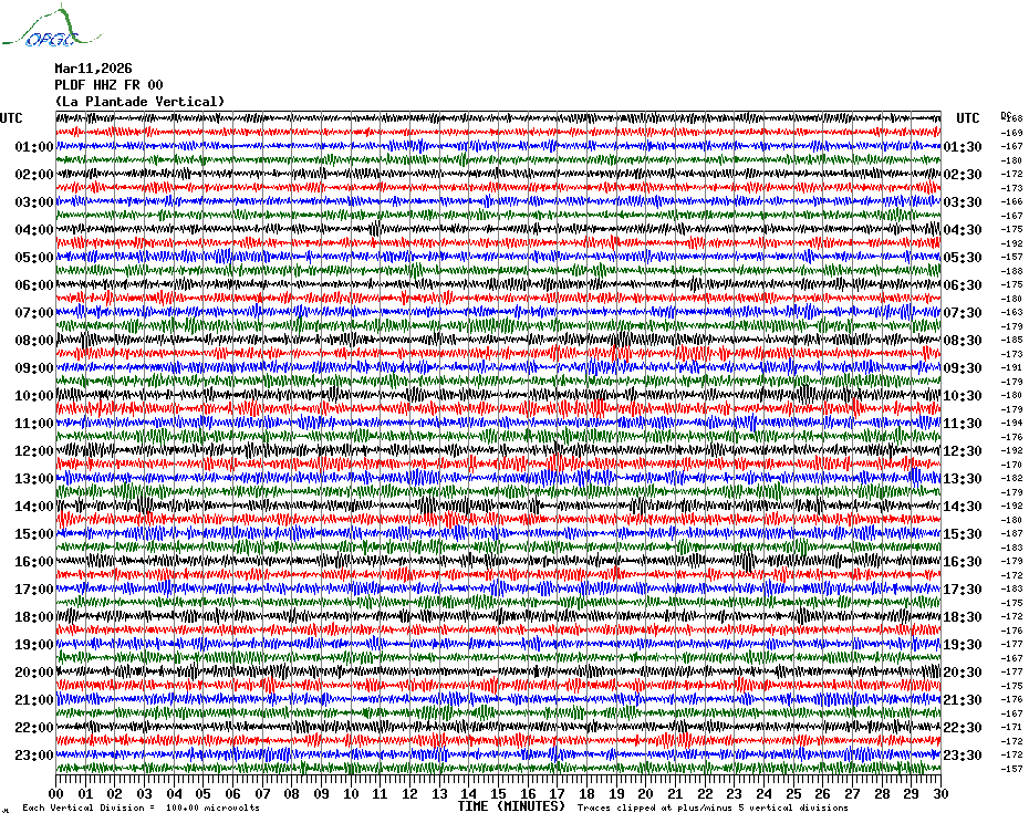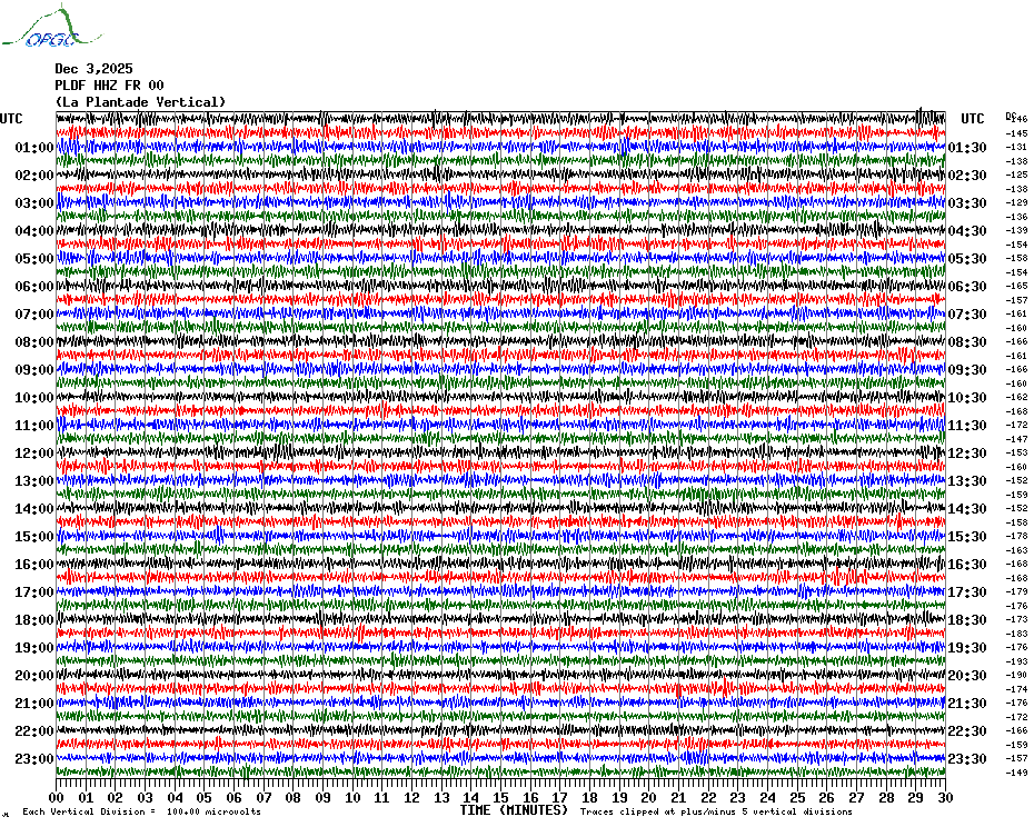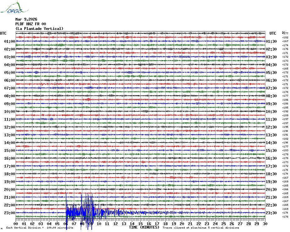 Sismogrammes du Réseau Sismologique Auvergne par fenêtre de 24h
