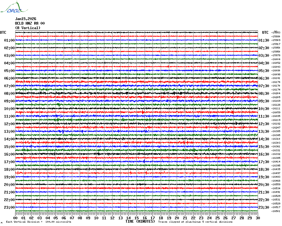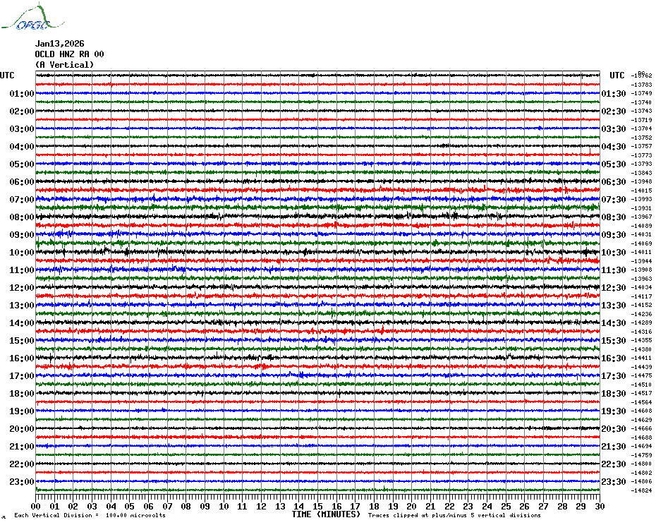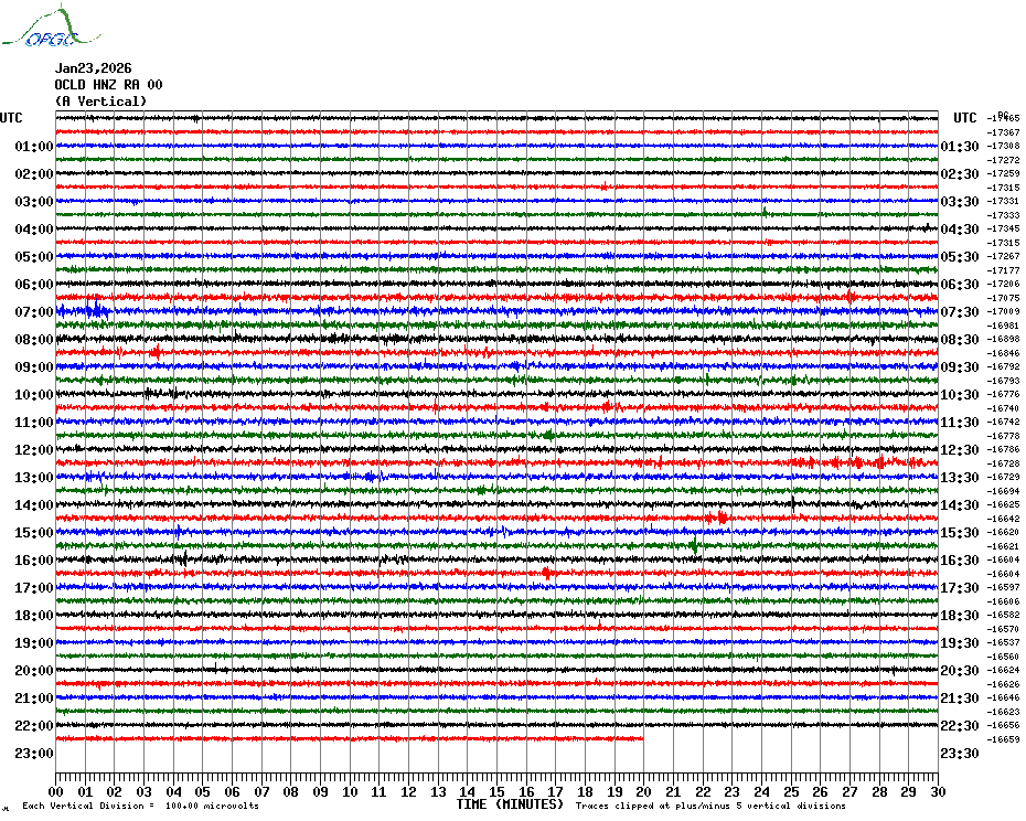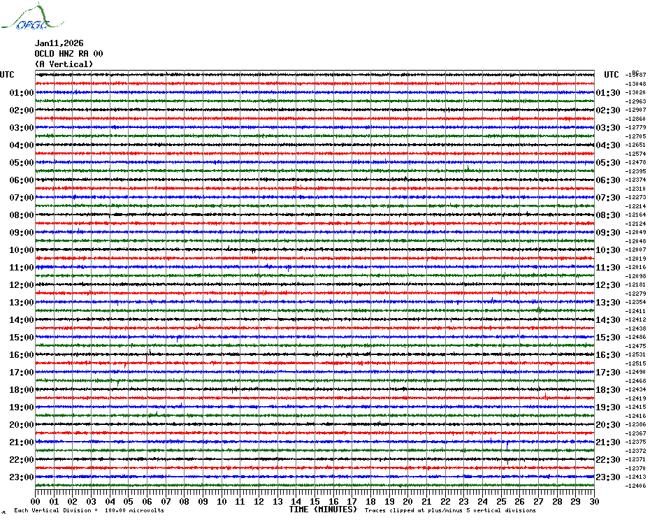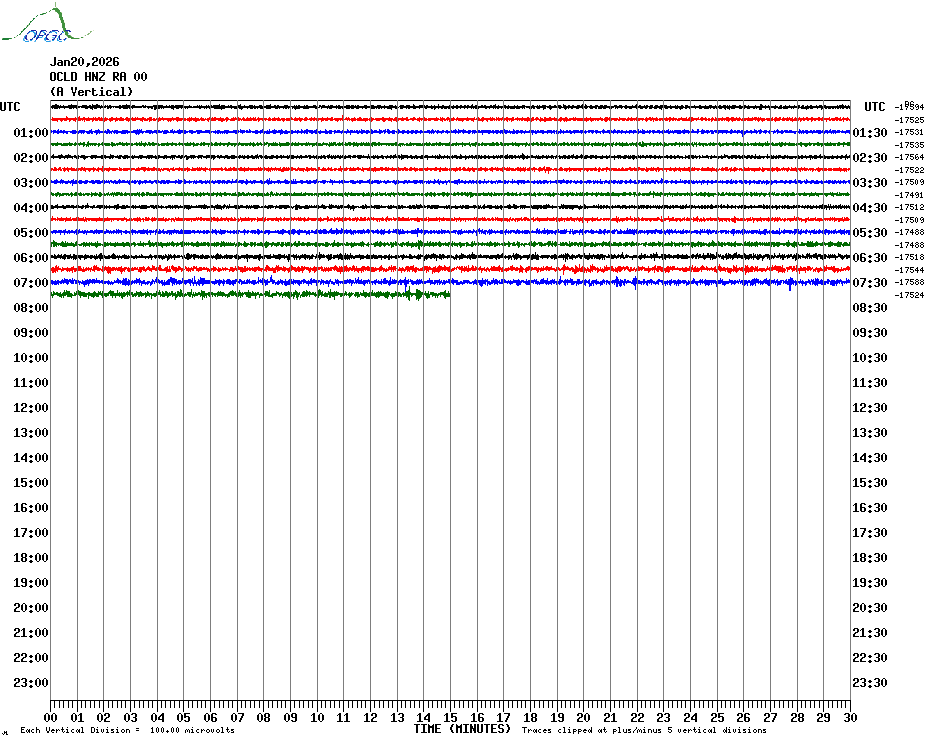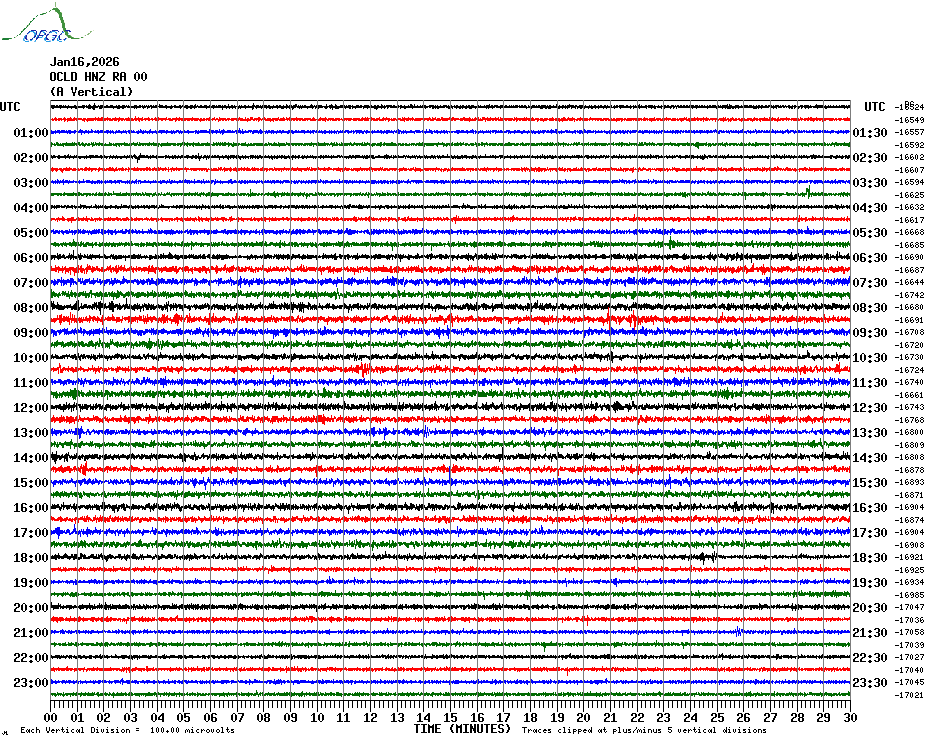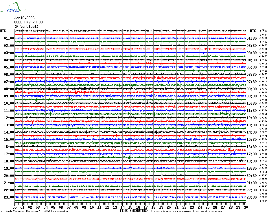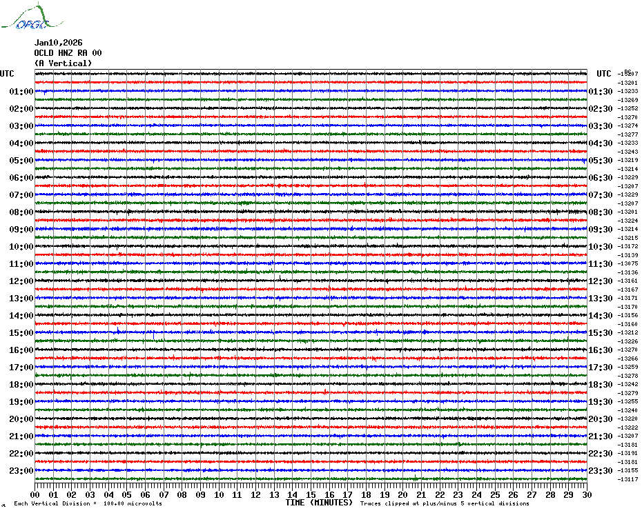 Sismogrammes du Réseau Sismologique Auvergne par fenêtre de 24h