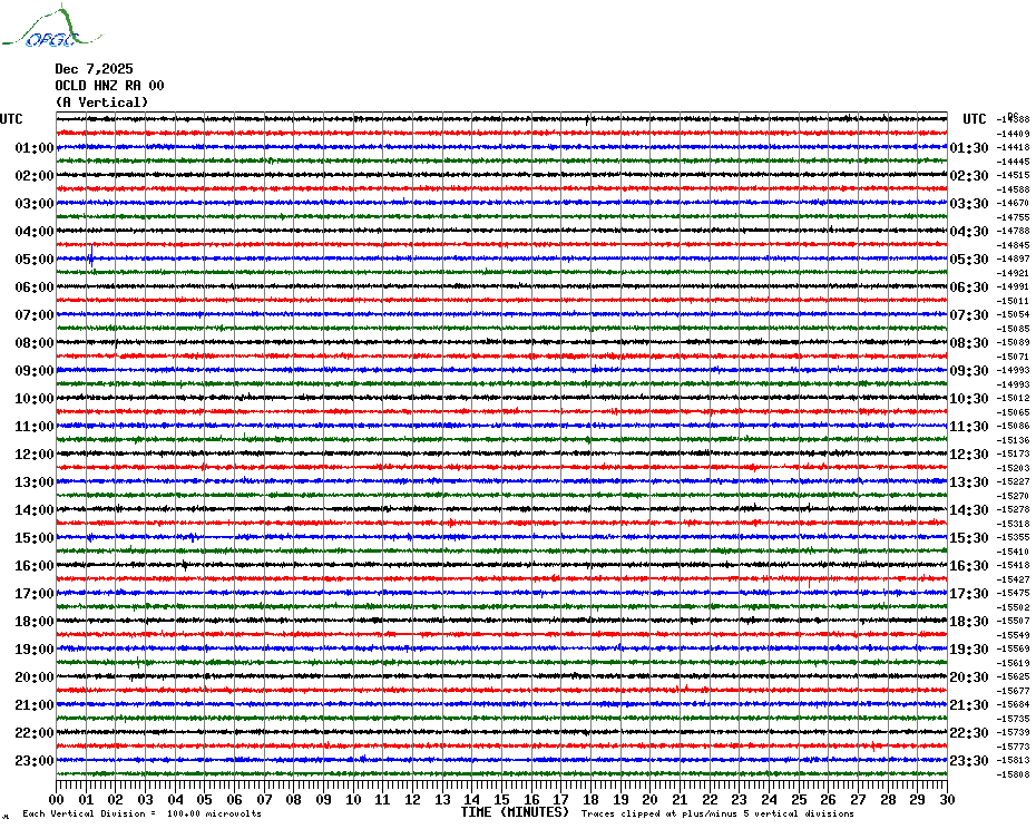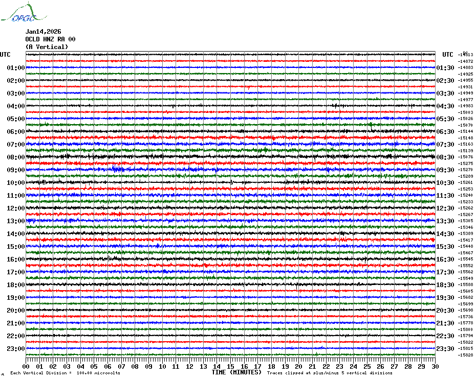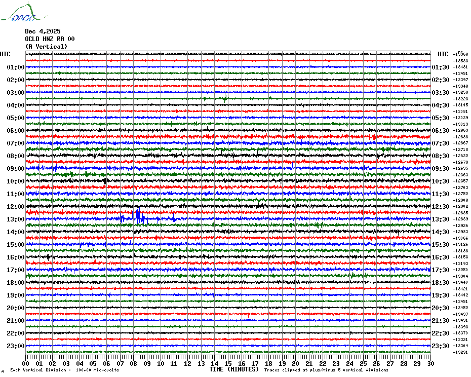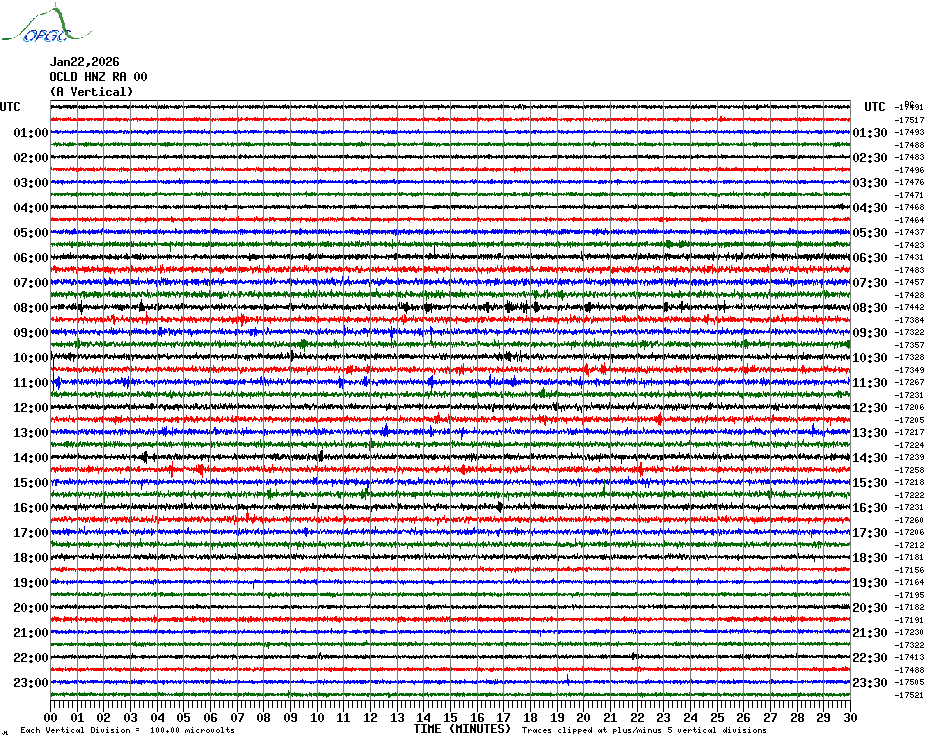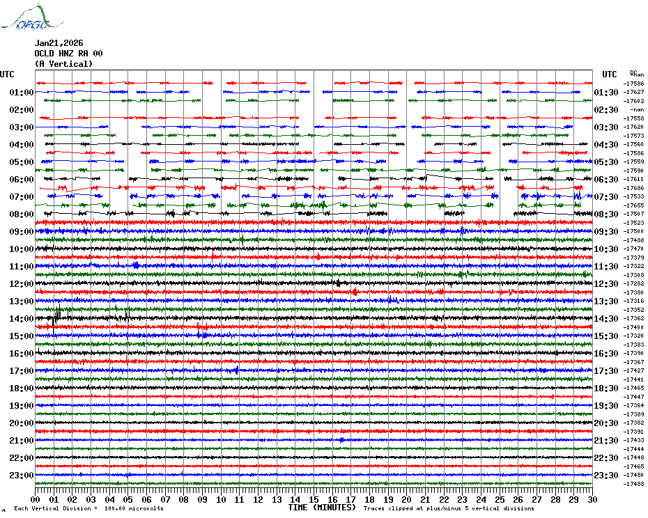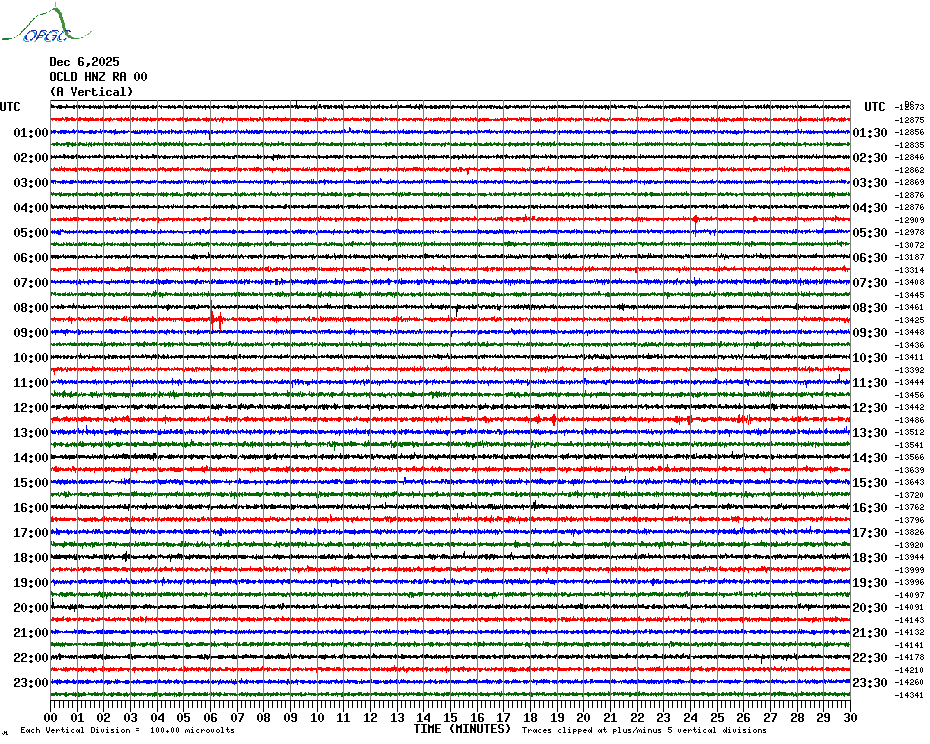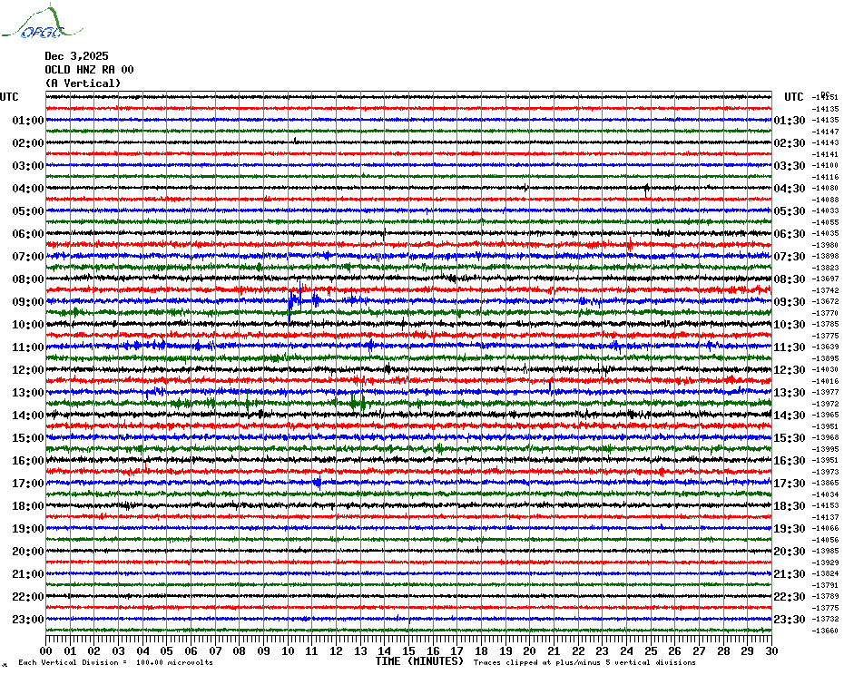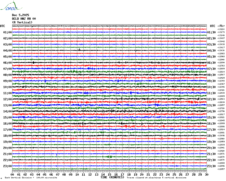 Sismogrammes du Réseau Sismologique Auvergne par fenêtre de 24h