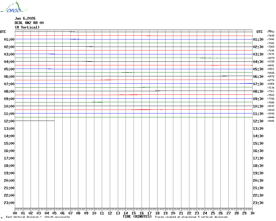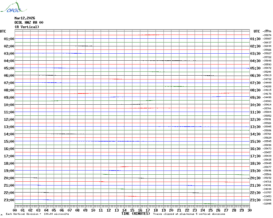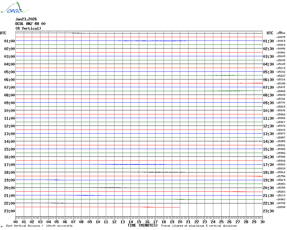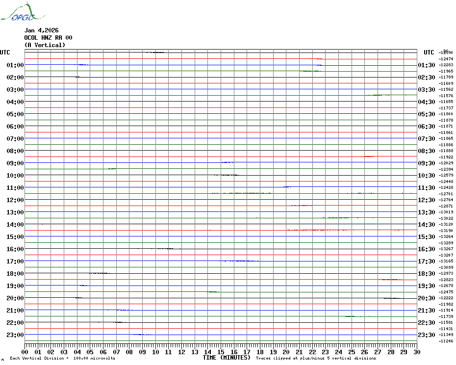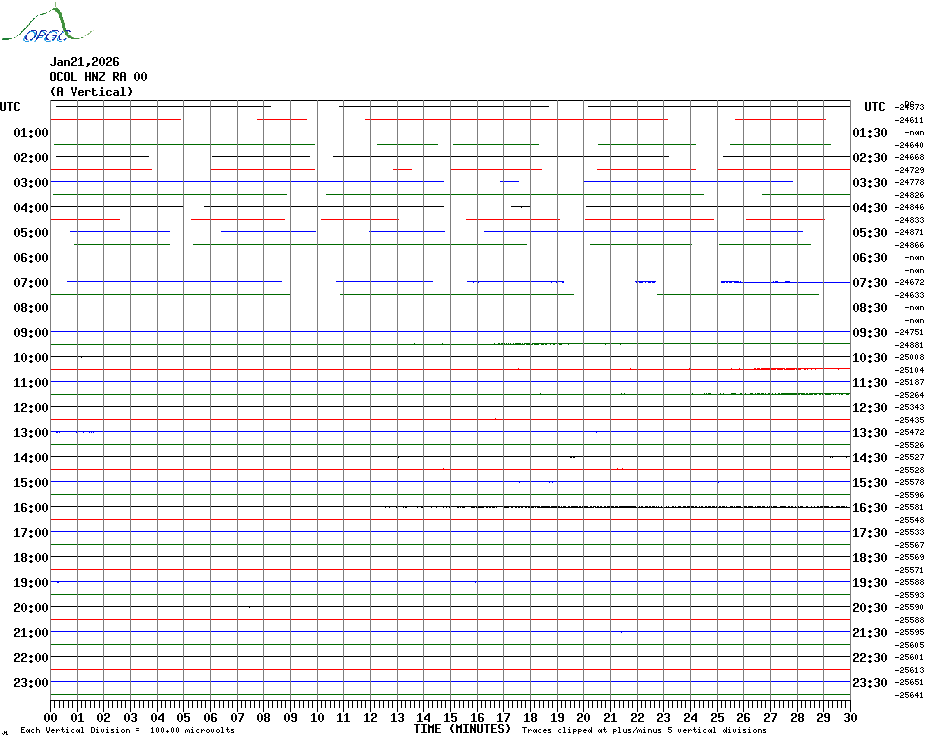 Sismogrammes du Réseau Sismologique Auvergne par fenêtre de 24h