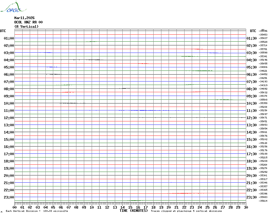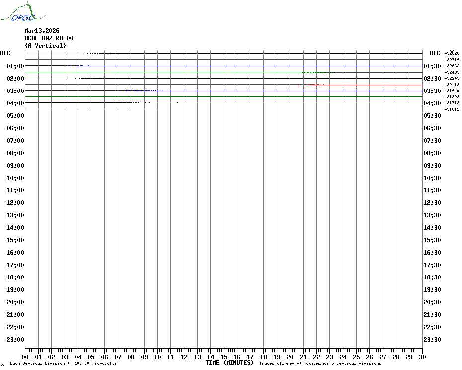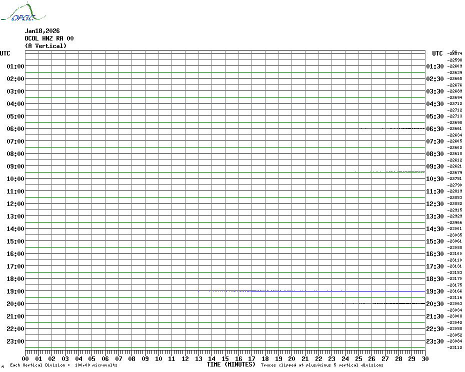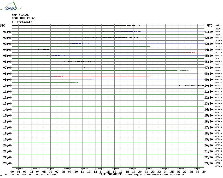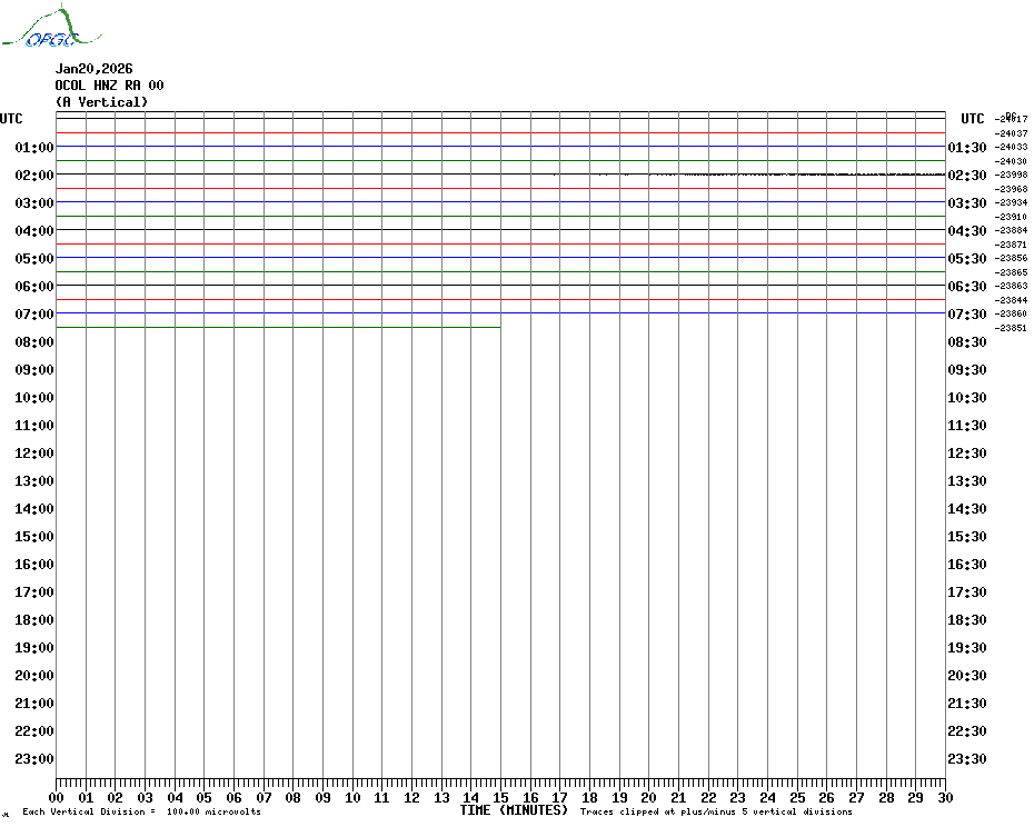 Sismogrammes du Réseau Sismologique Auvergne par fenêtre de 24h