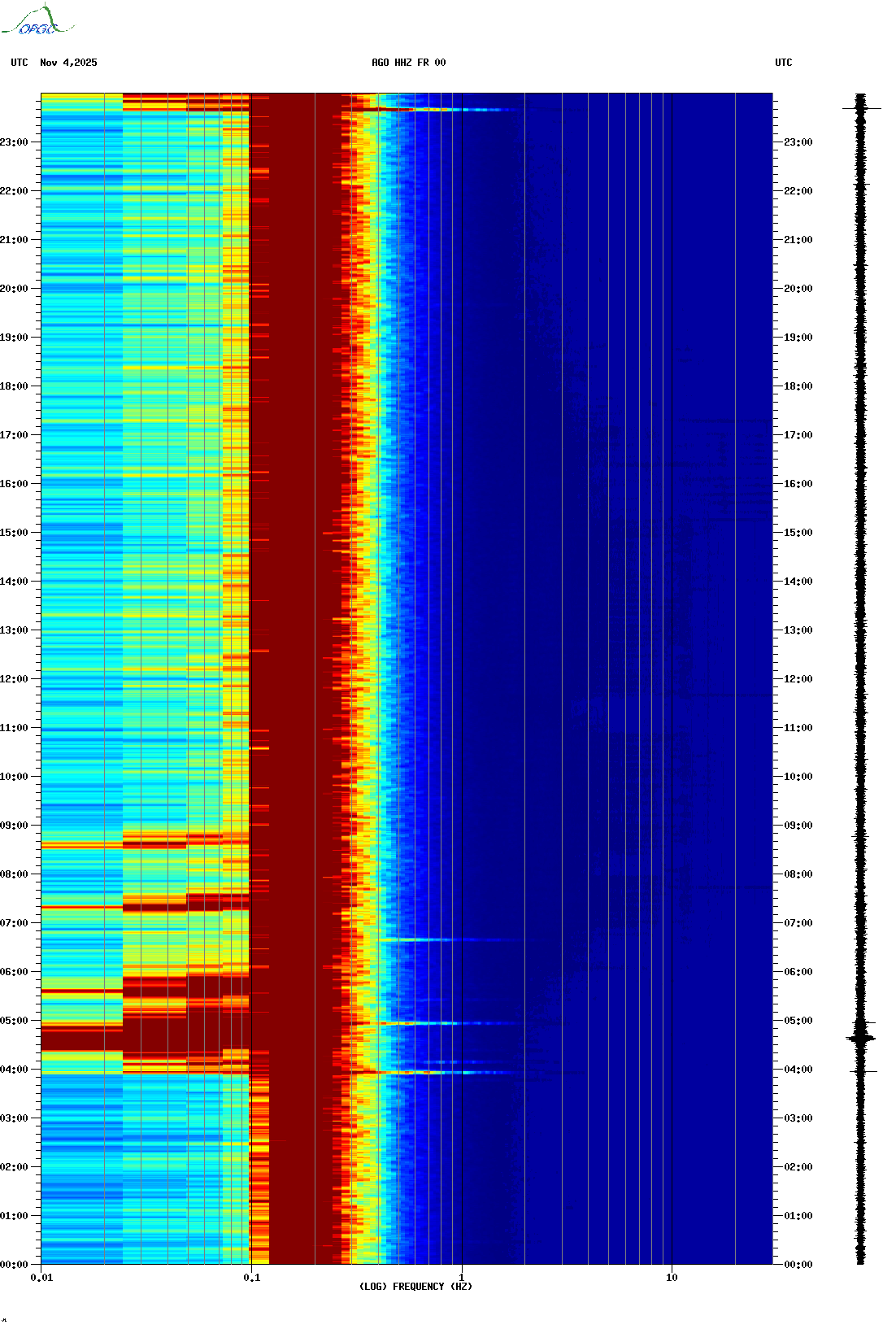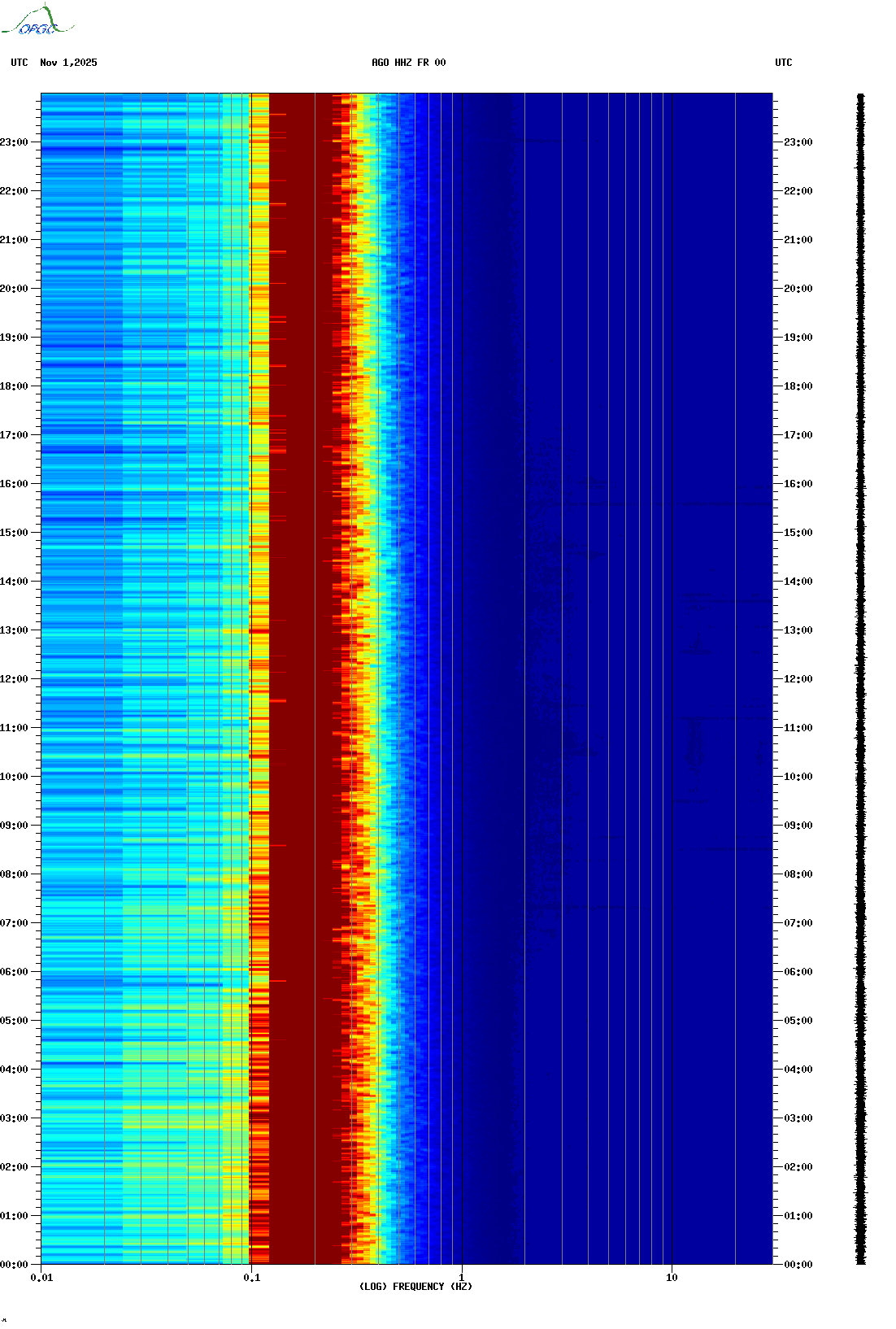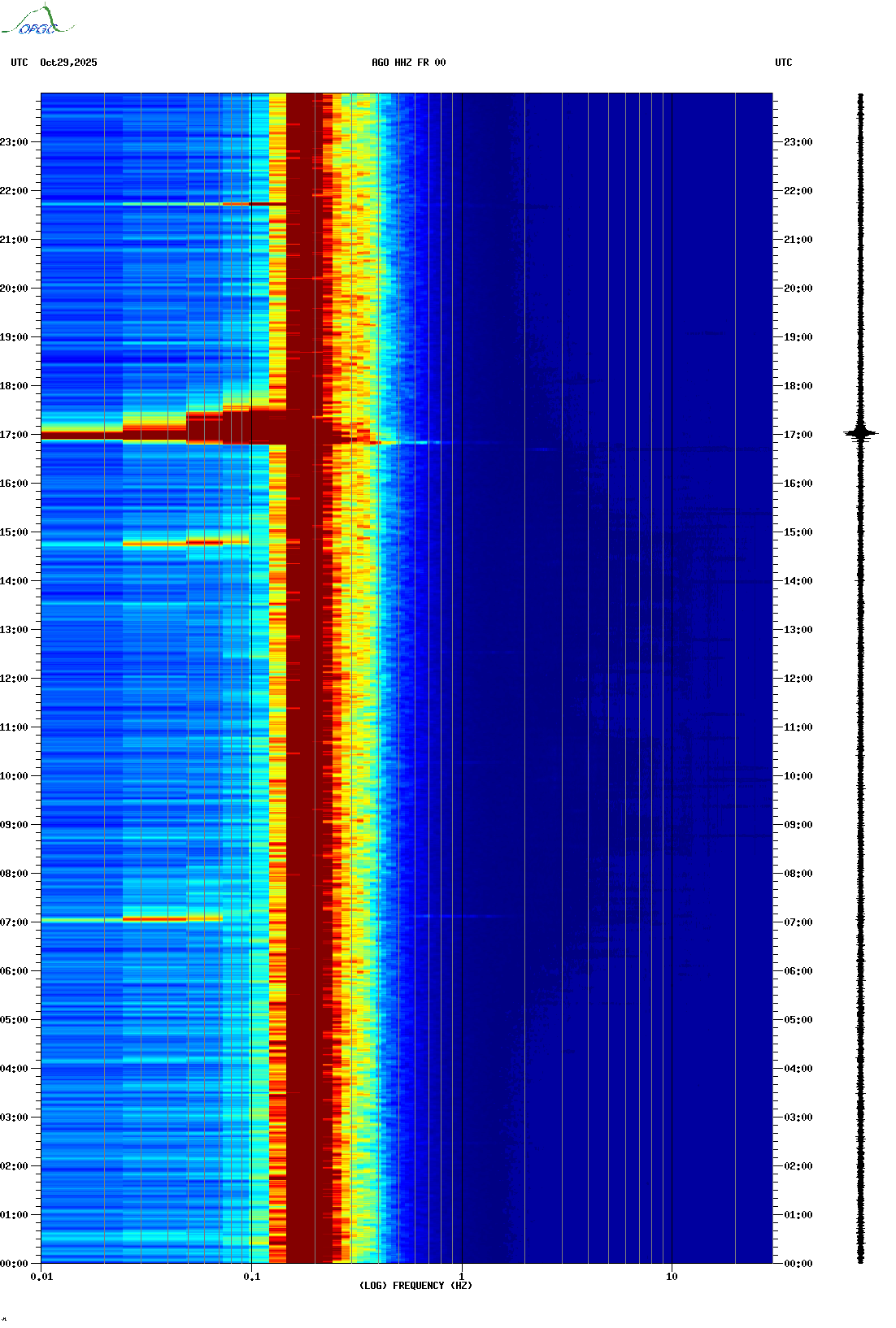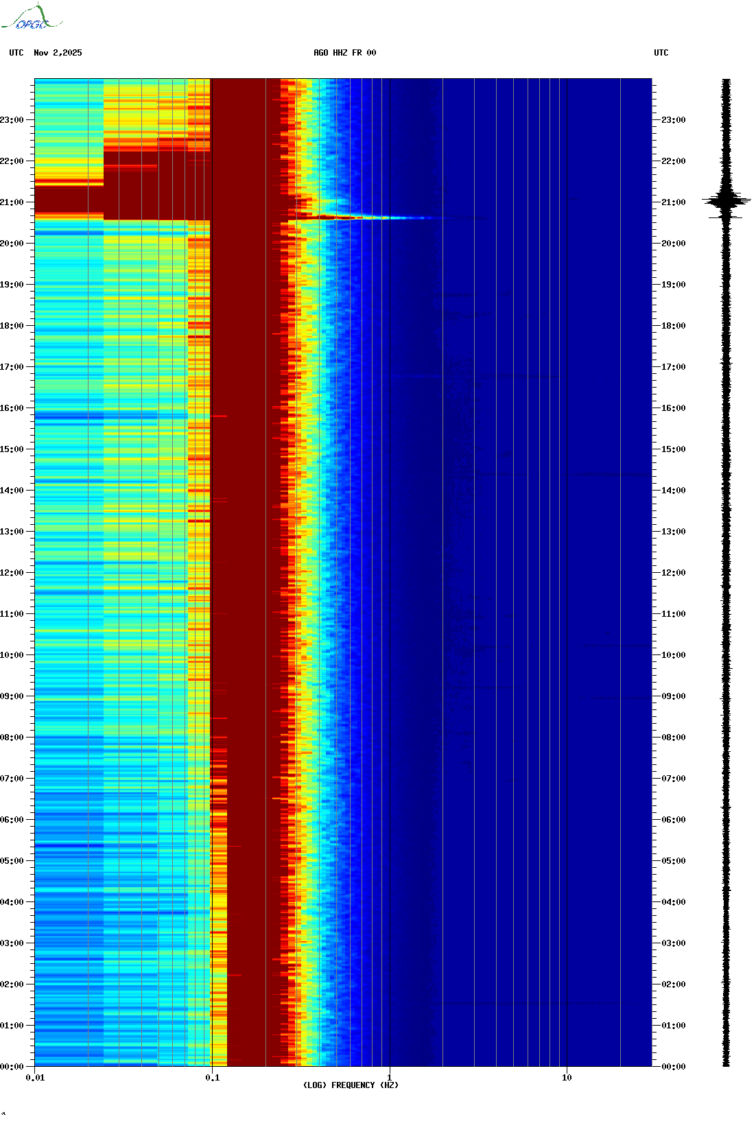 Spectrogrammes du Réseau Sismologique Auvergne-Charentes