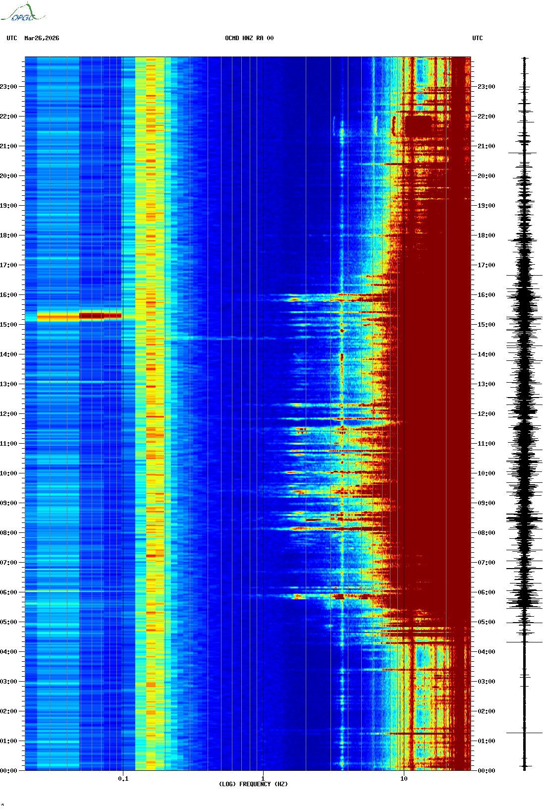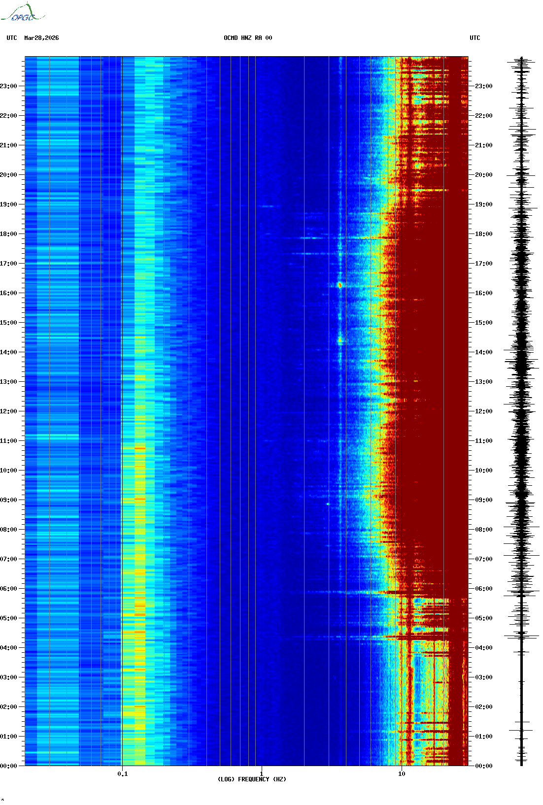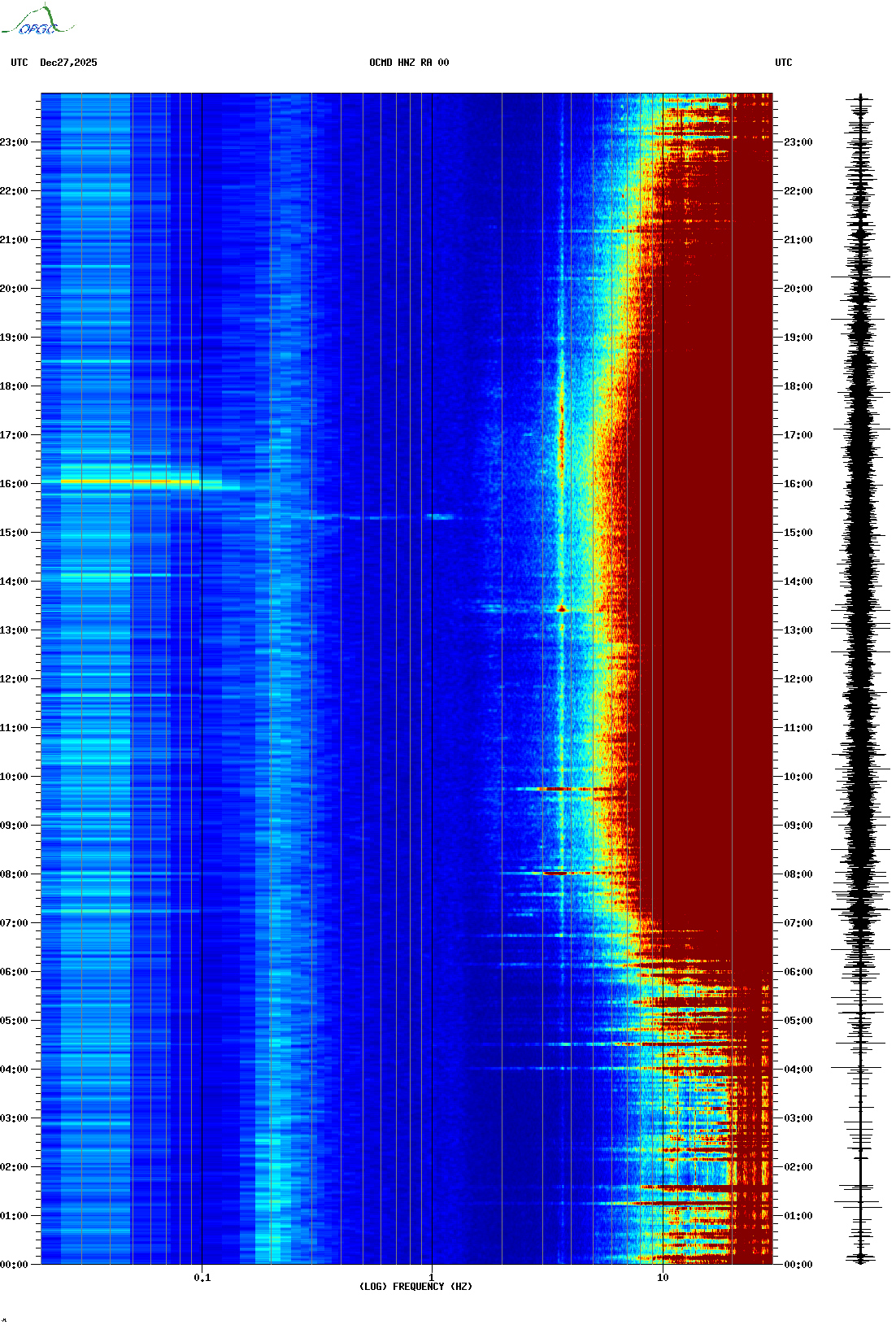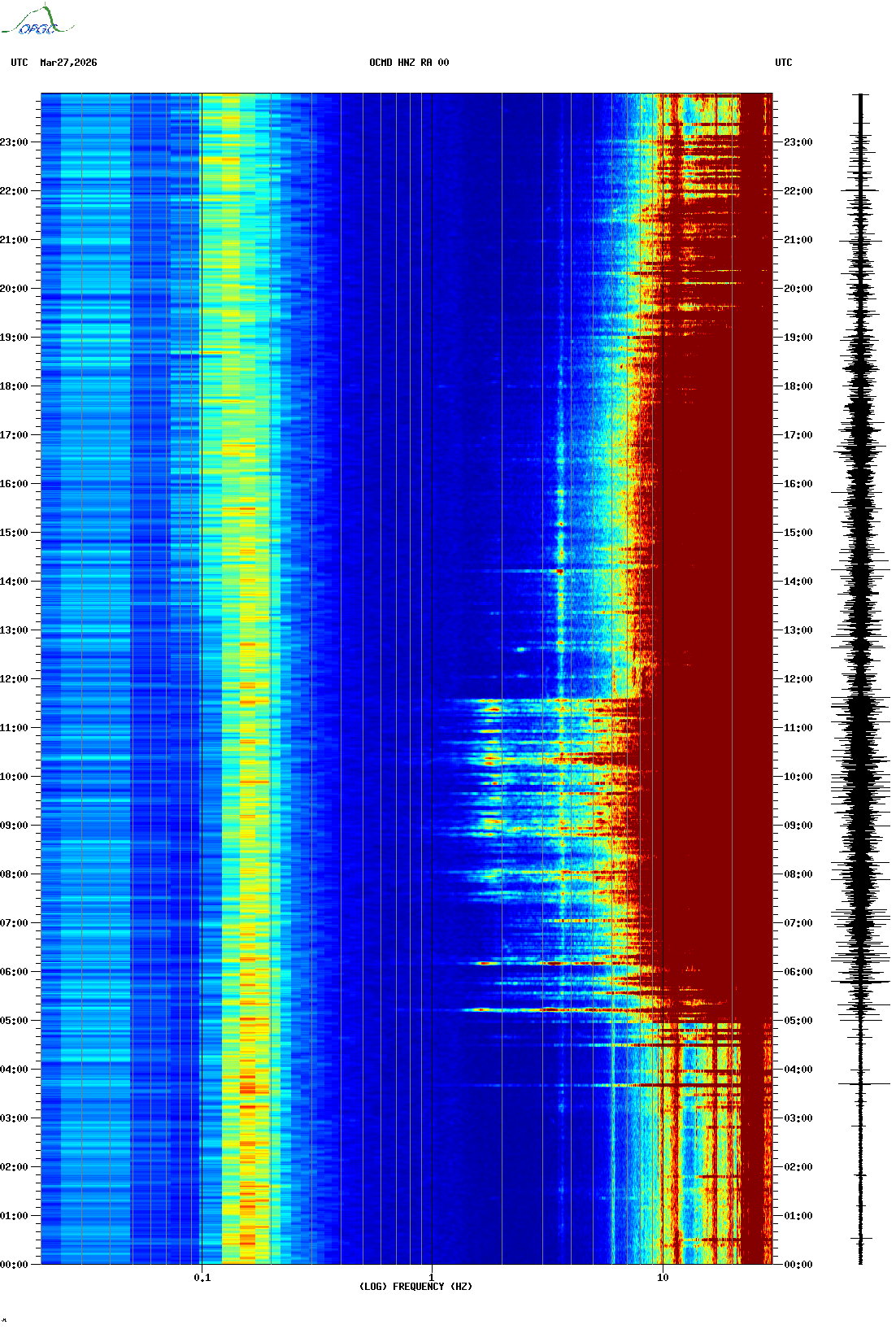 Spectrogrammes du Réseau Sismologique Auvergne-Charentes