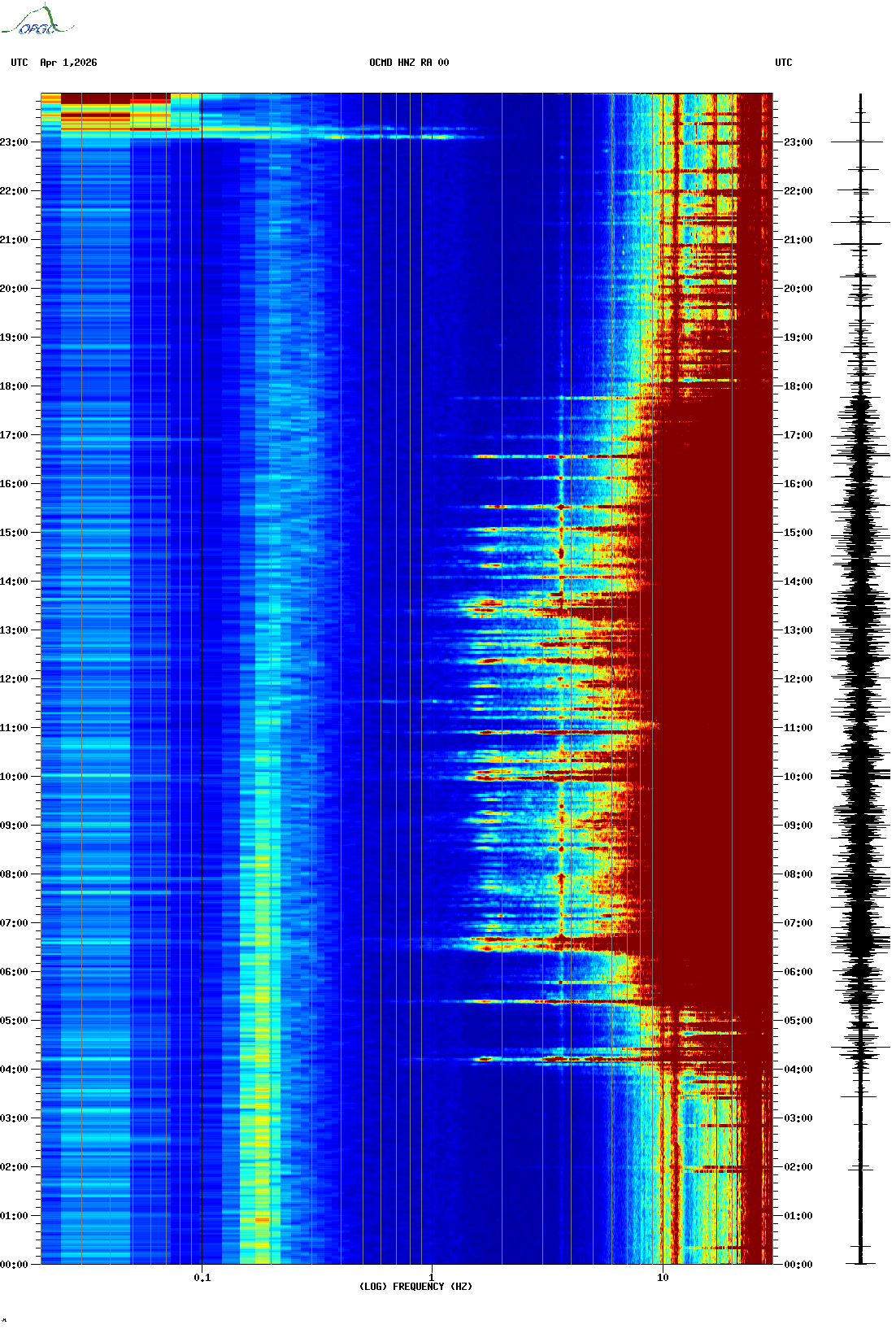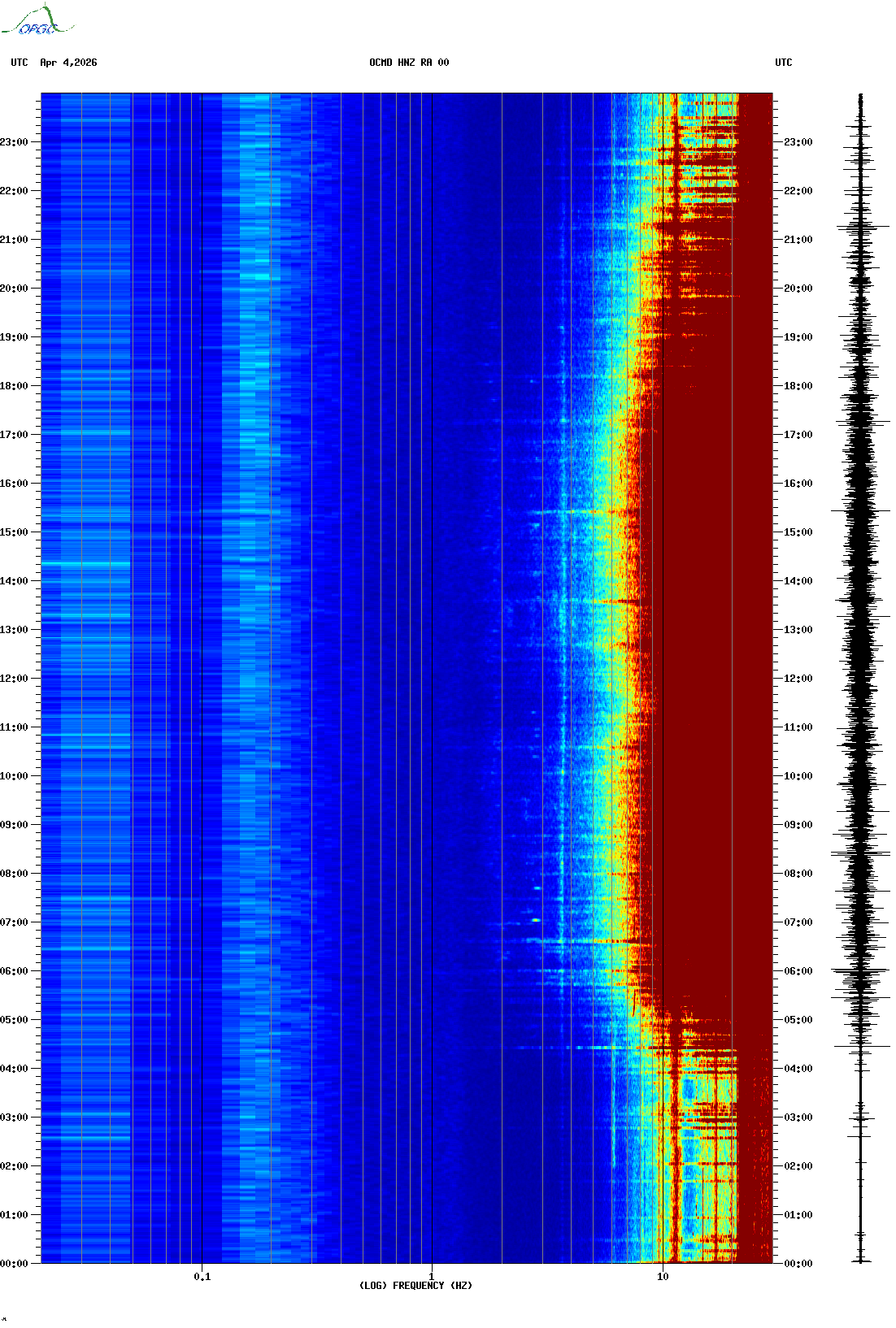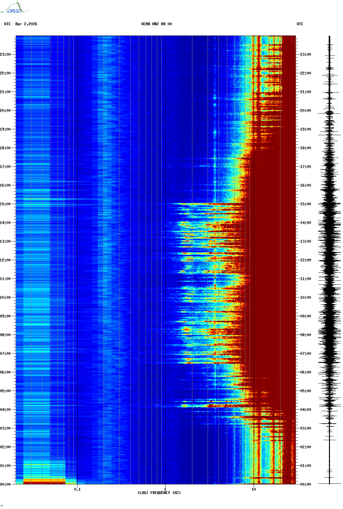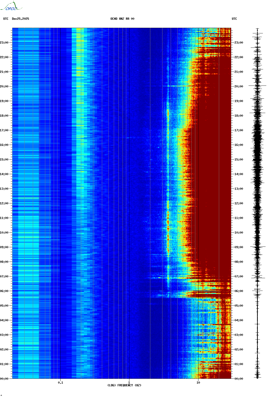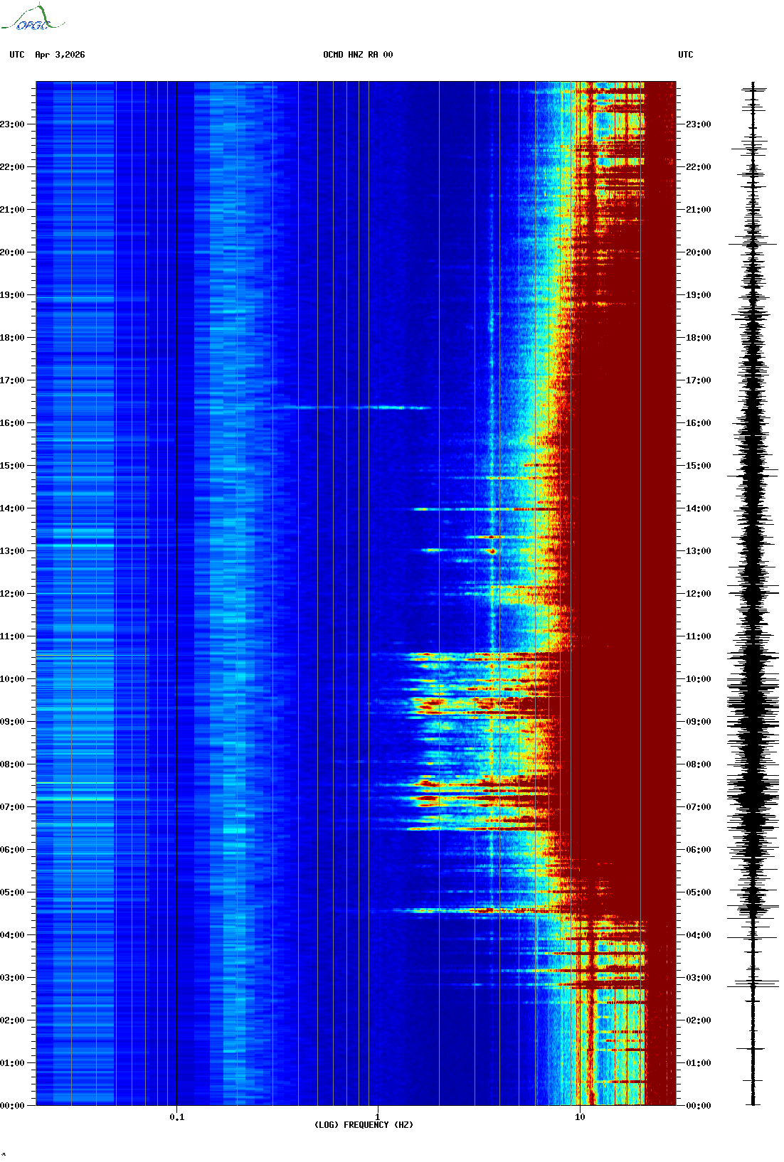 Spectrogrammes du Réseau Sismologique Auvergne-Charentes