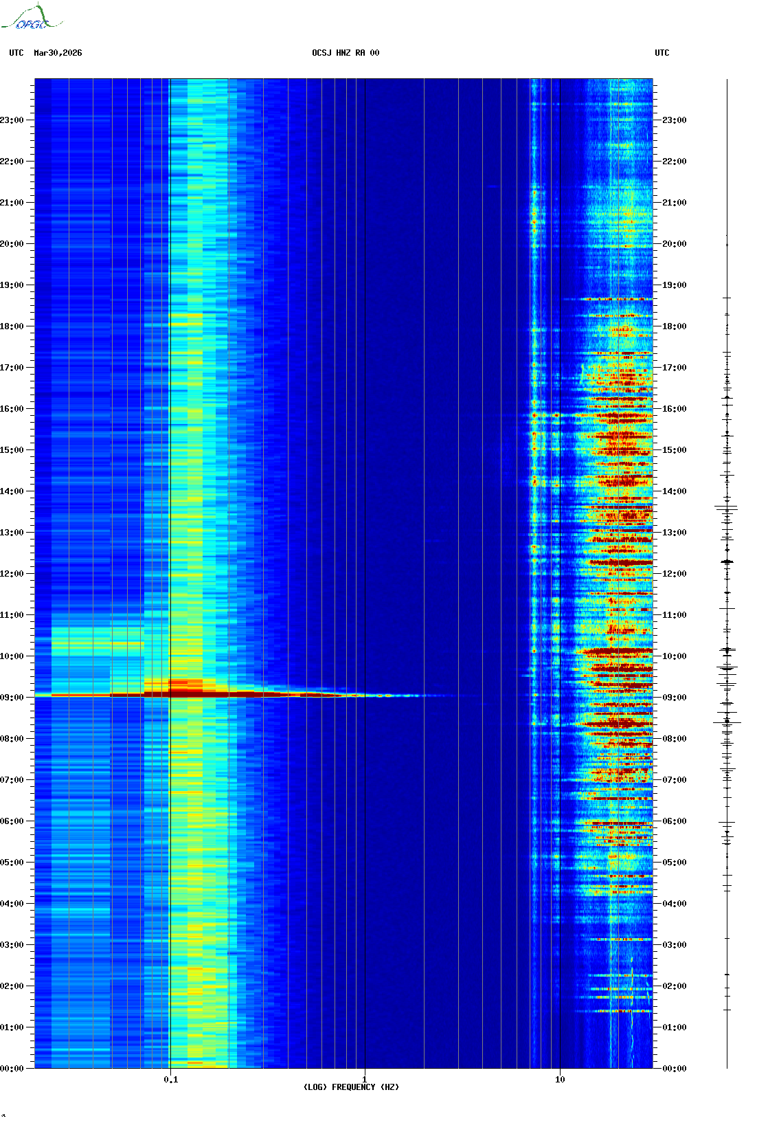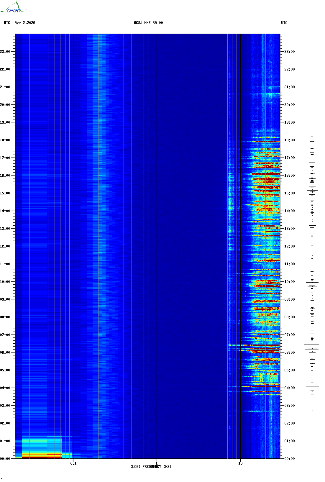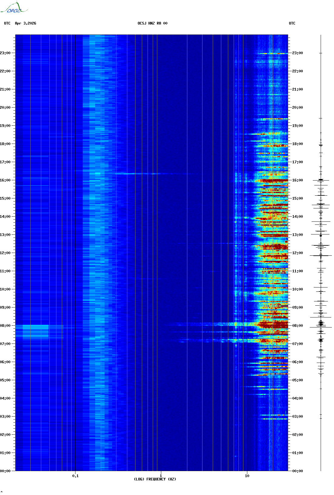 Spectrogrammes du Réseau Sismologique Auvergne-Charentes