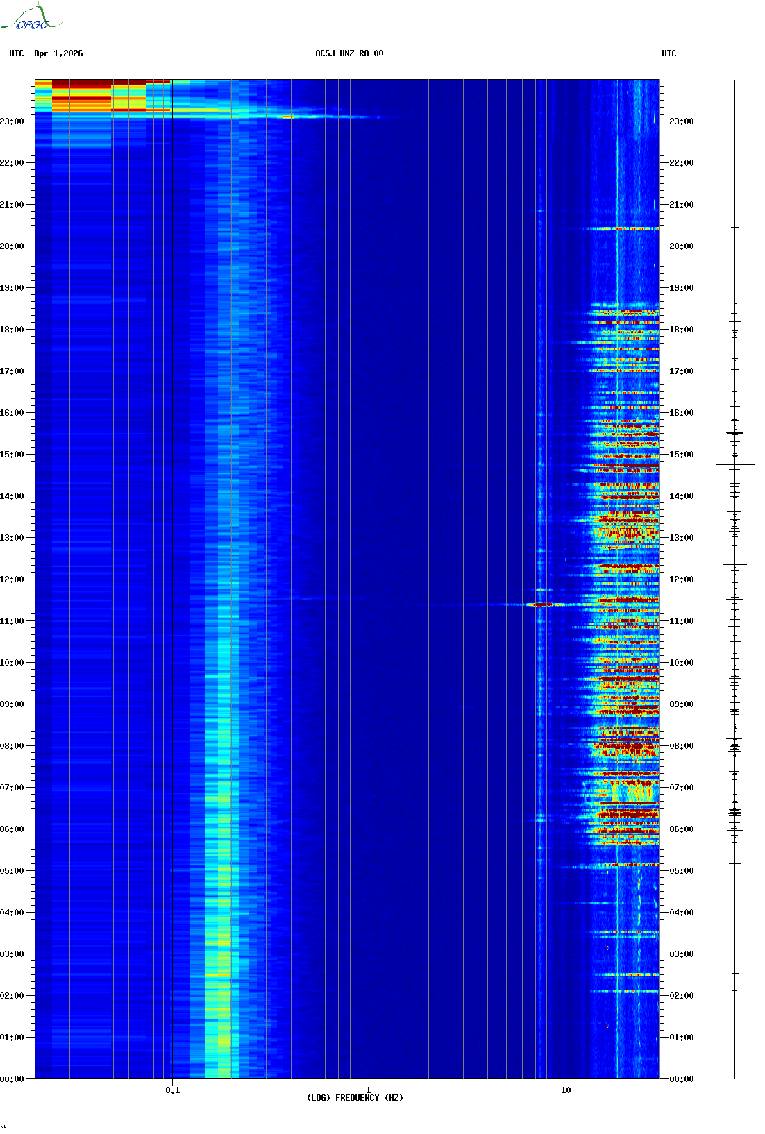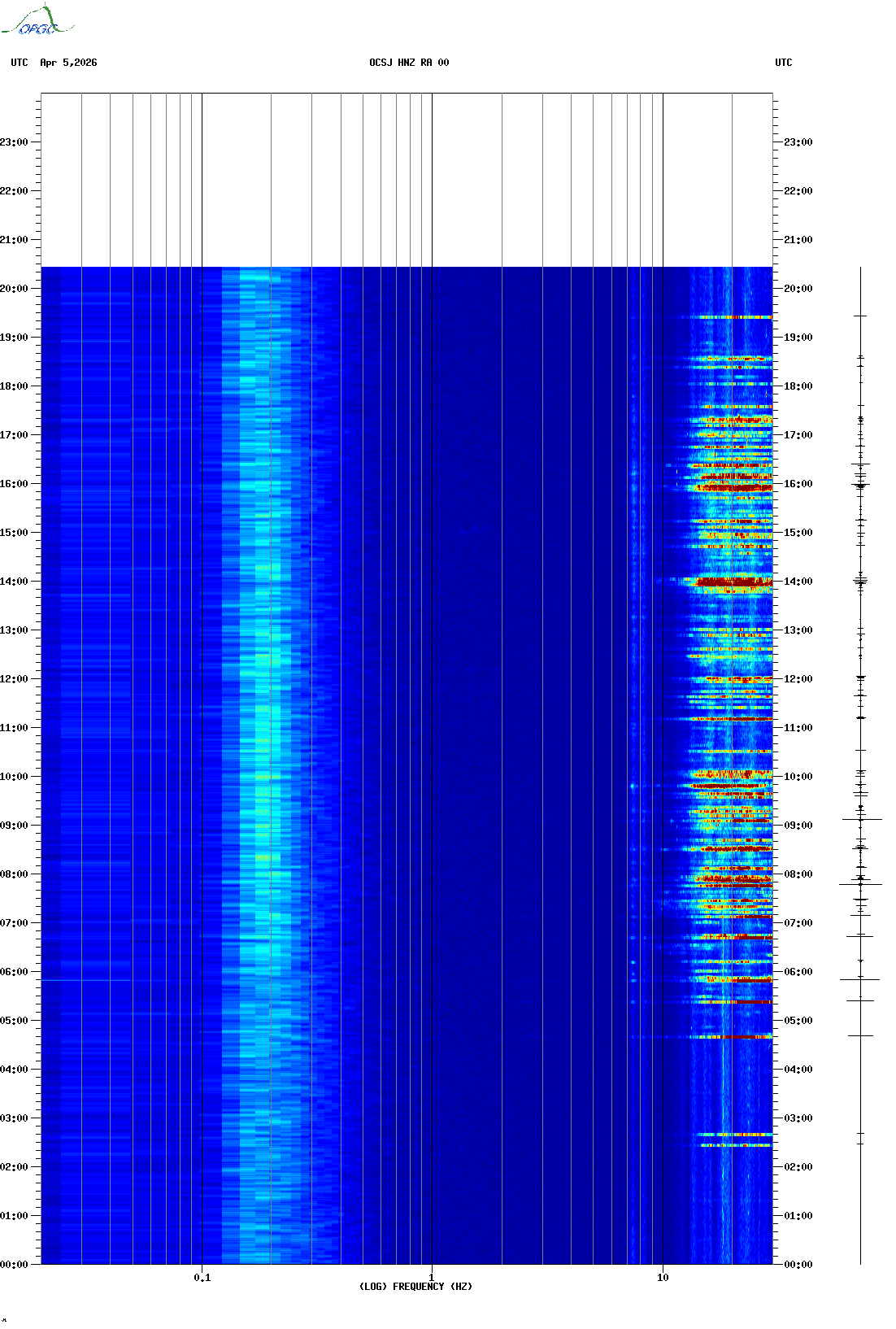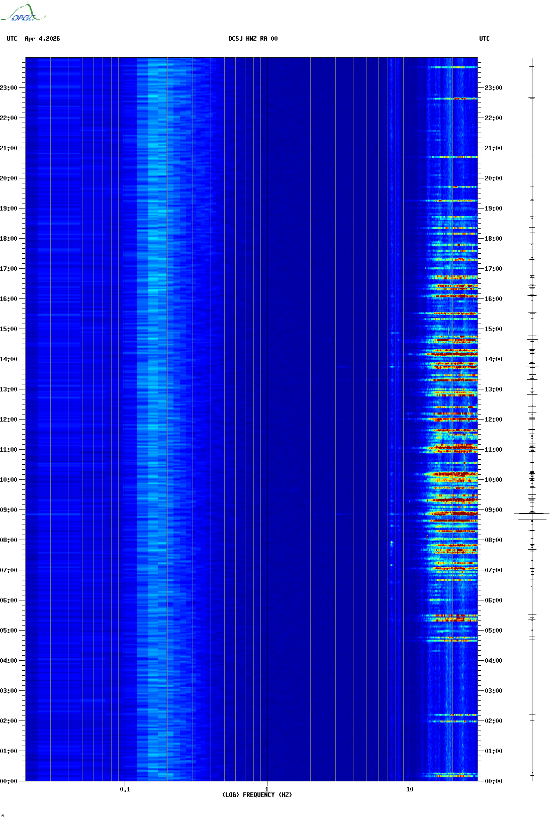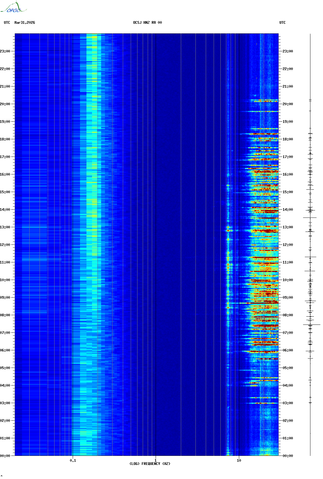Spectrogrammes du Réseau Sismologique Auvergne-Charentes