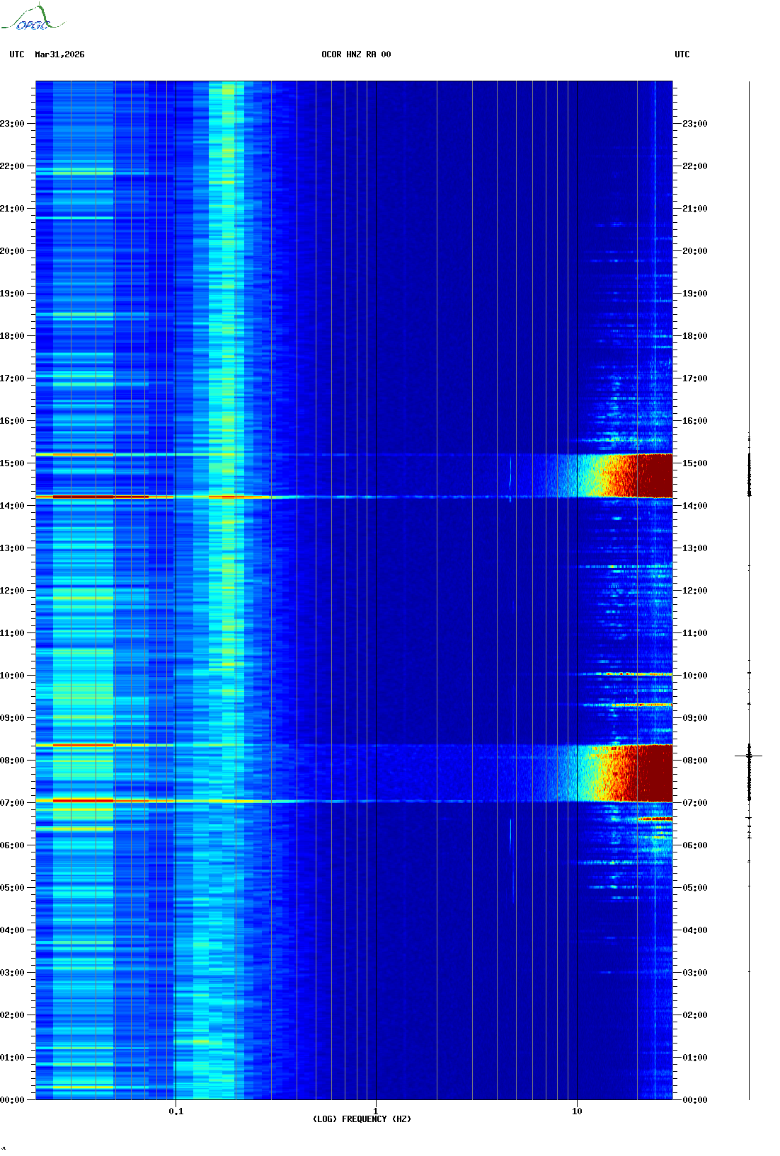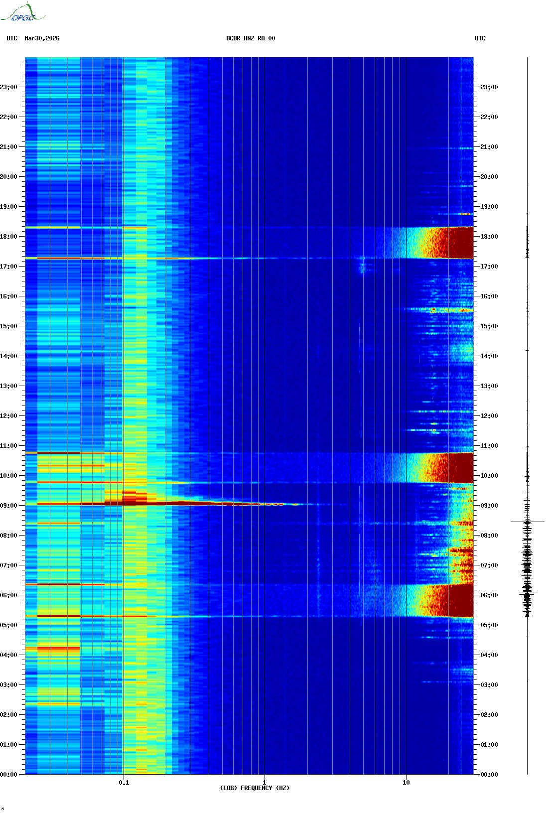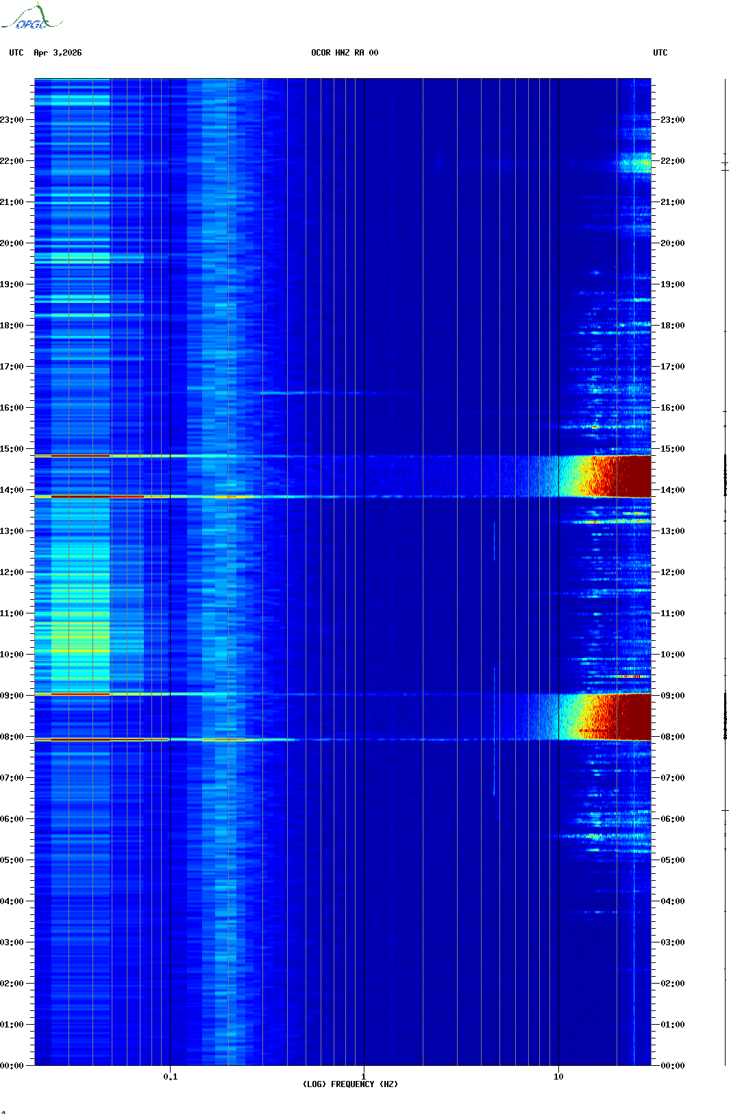 Spectrogrammes du Réseau Sismologique Auvergne-Charentes