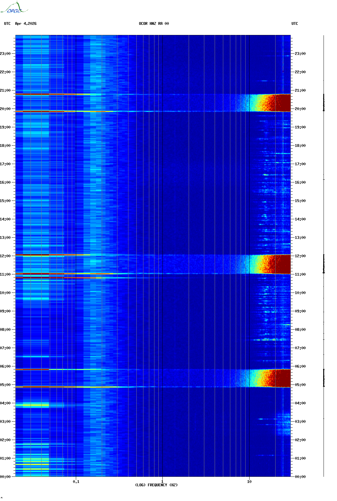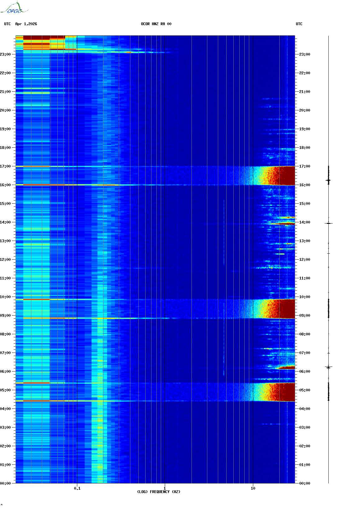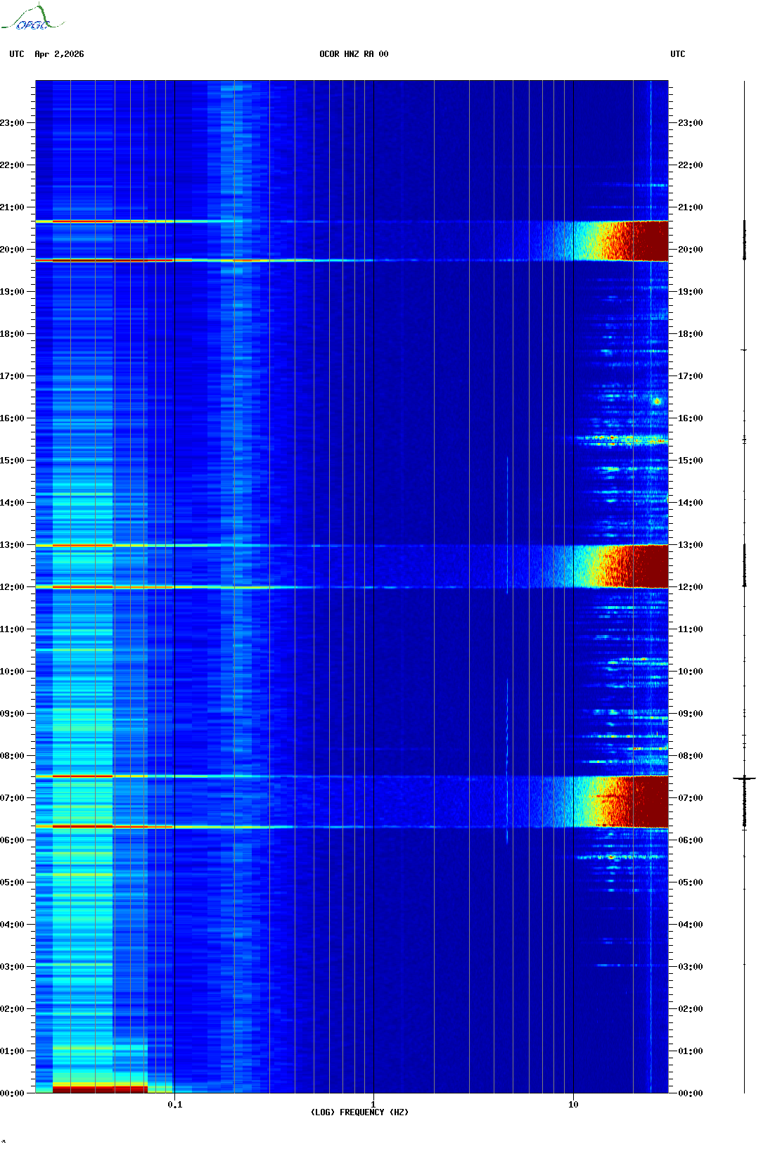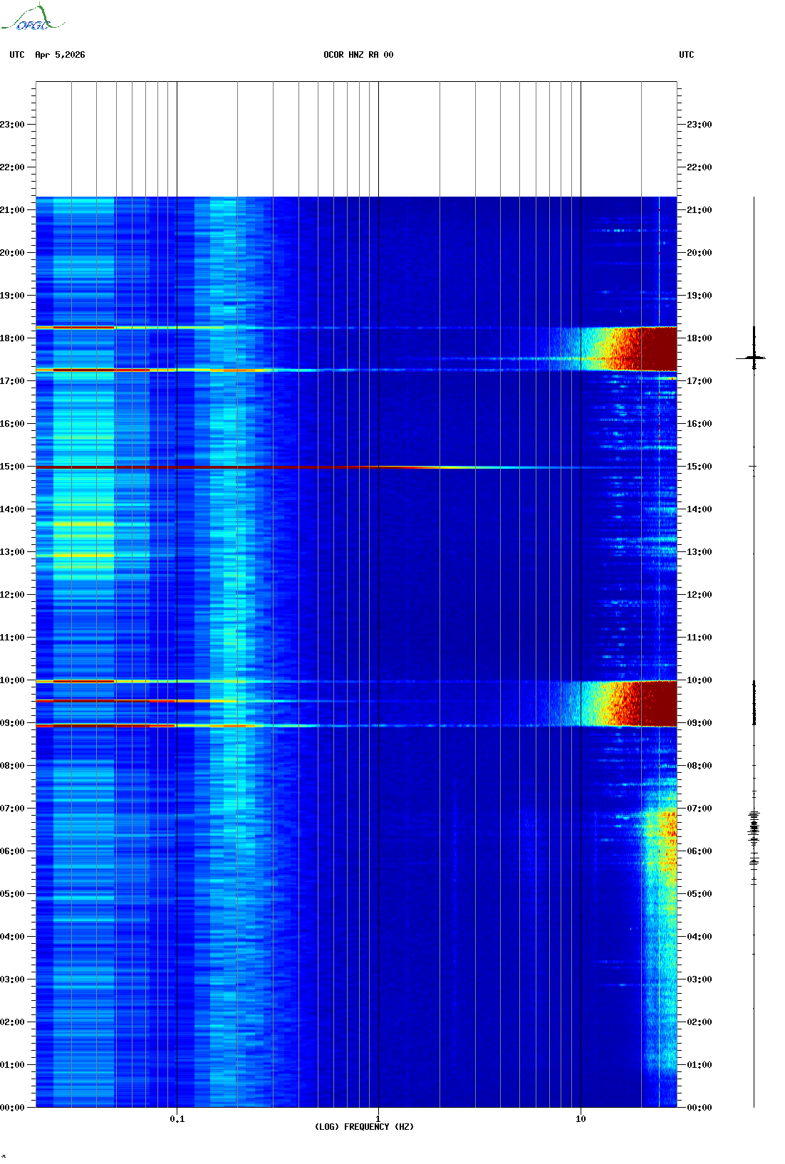 Spectrogrammes du Réseau Sismologique Auvergne-Charentes