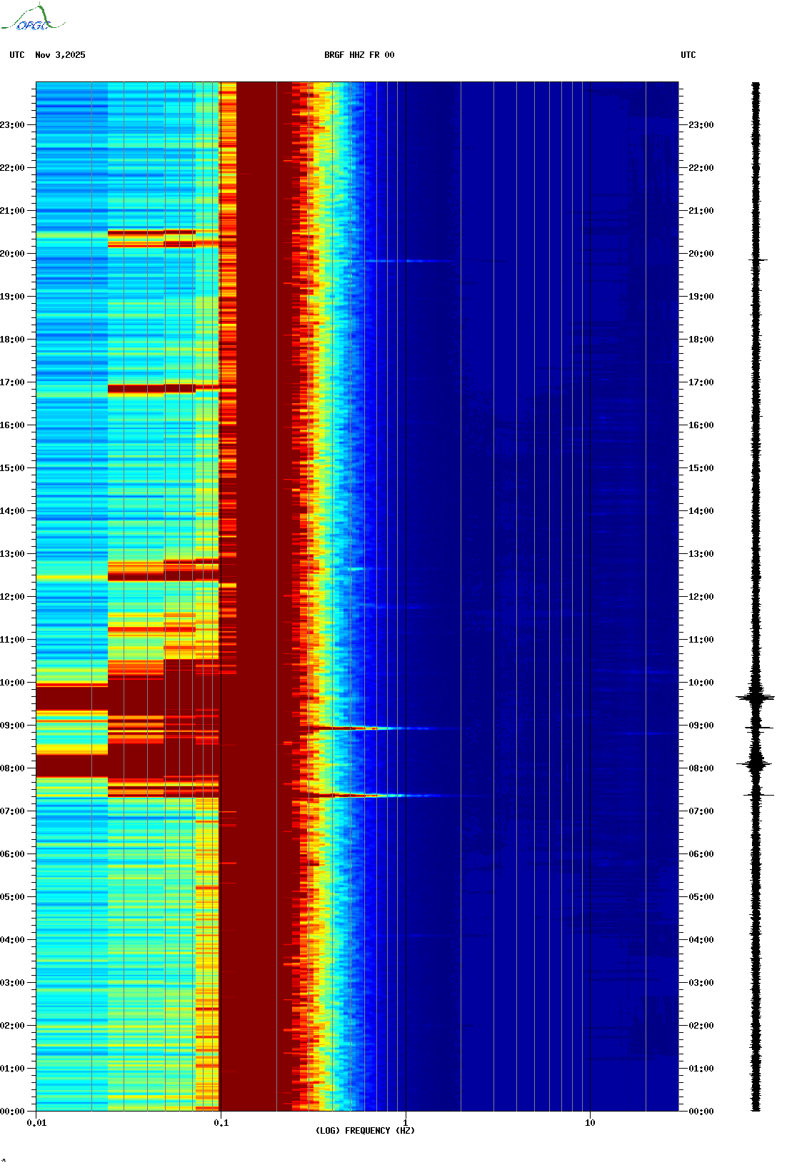 Spectrogrammes du Réseau Sismologique Auvergne-Charentes