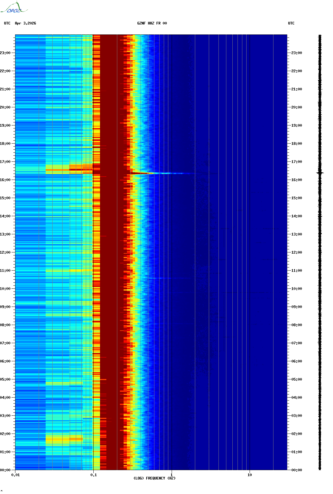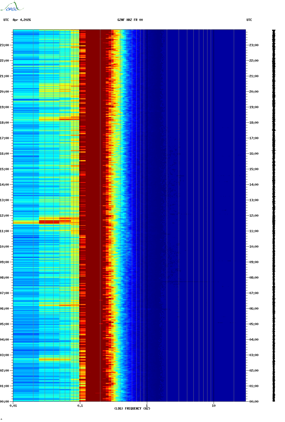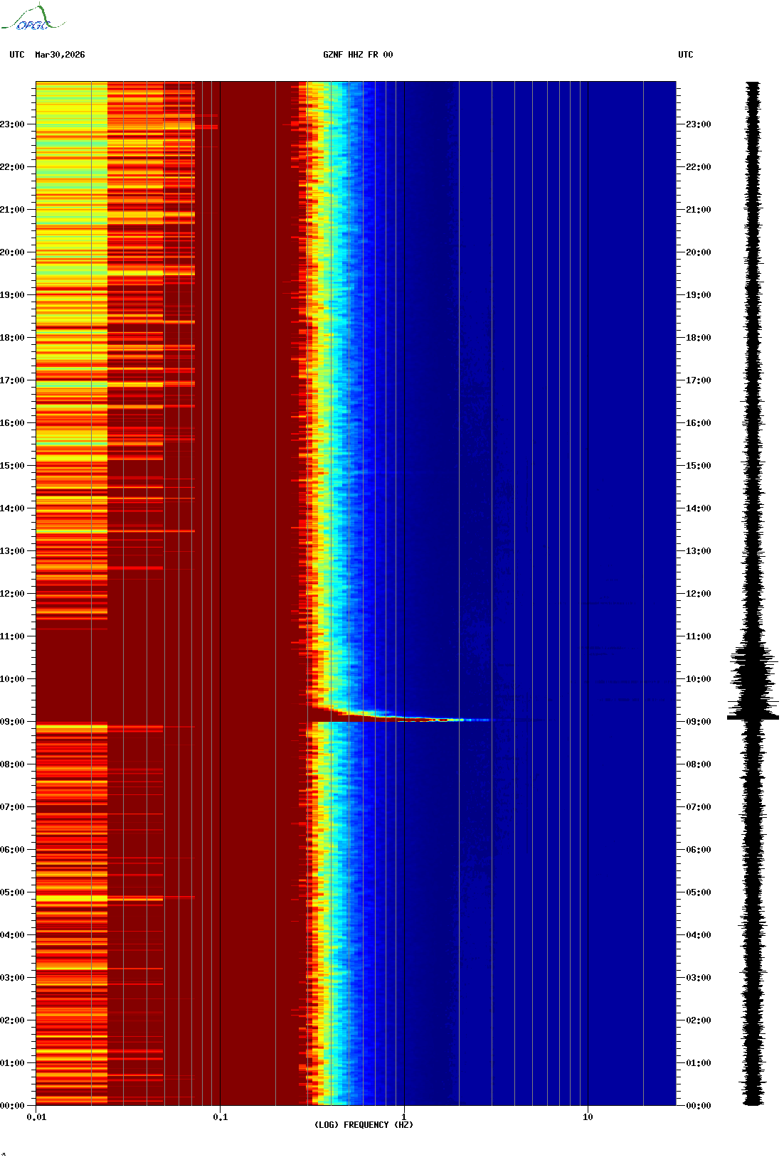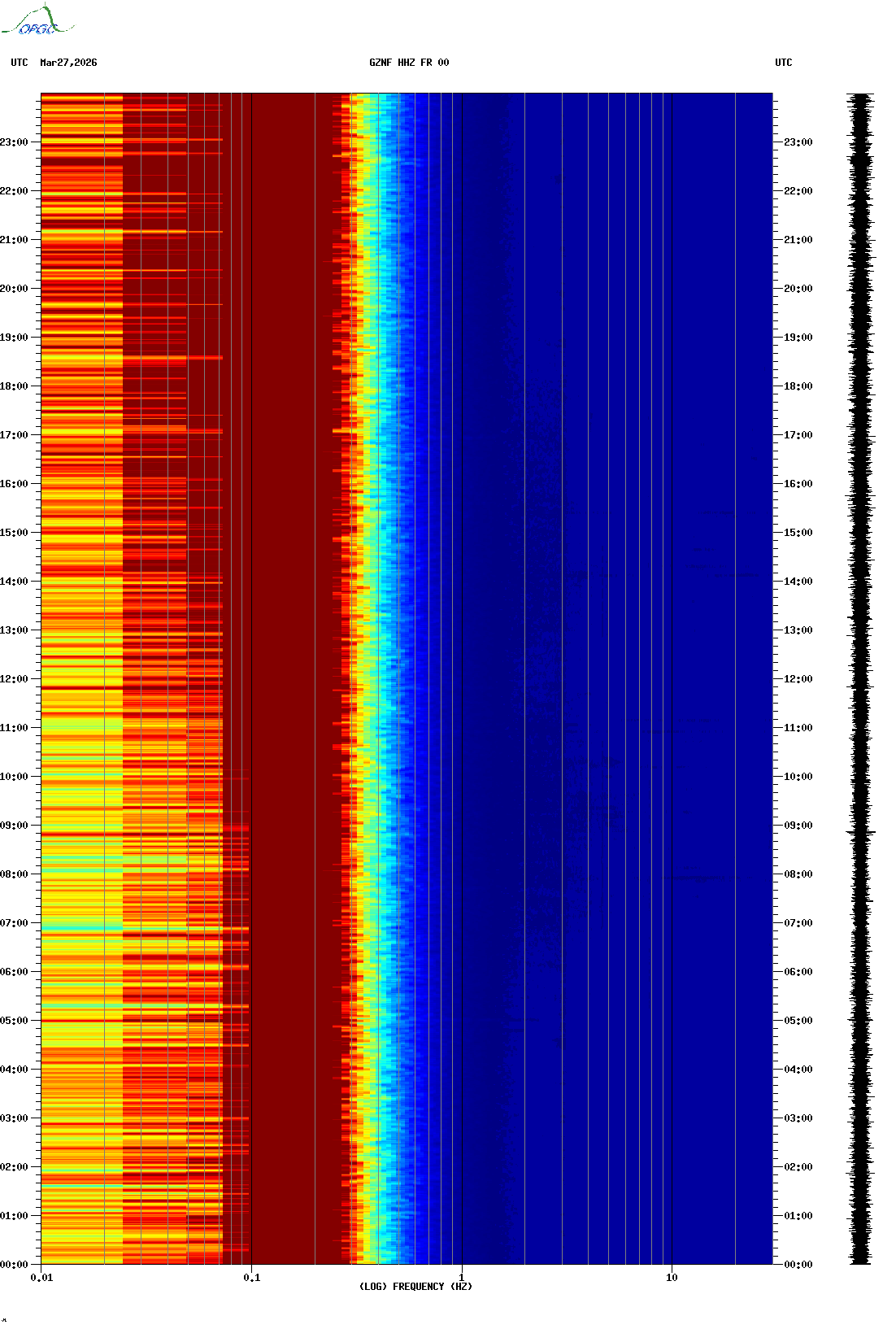 Spectrogrammes du Réseau Sismologique Auvergne-Charentes
