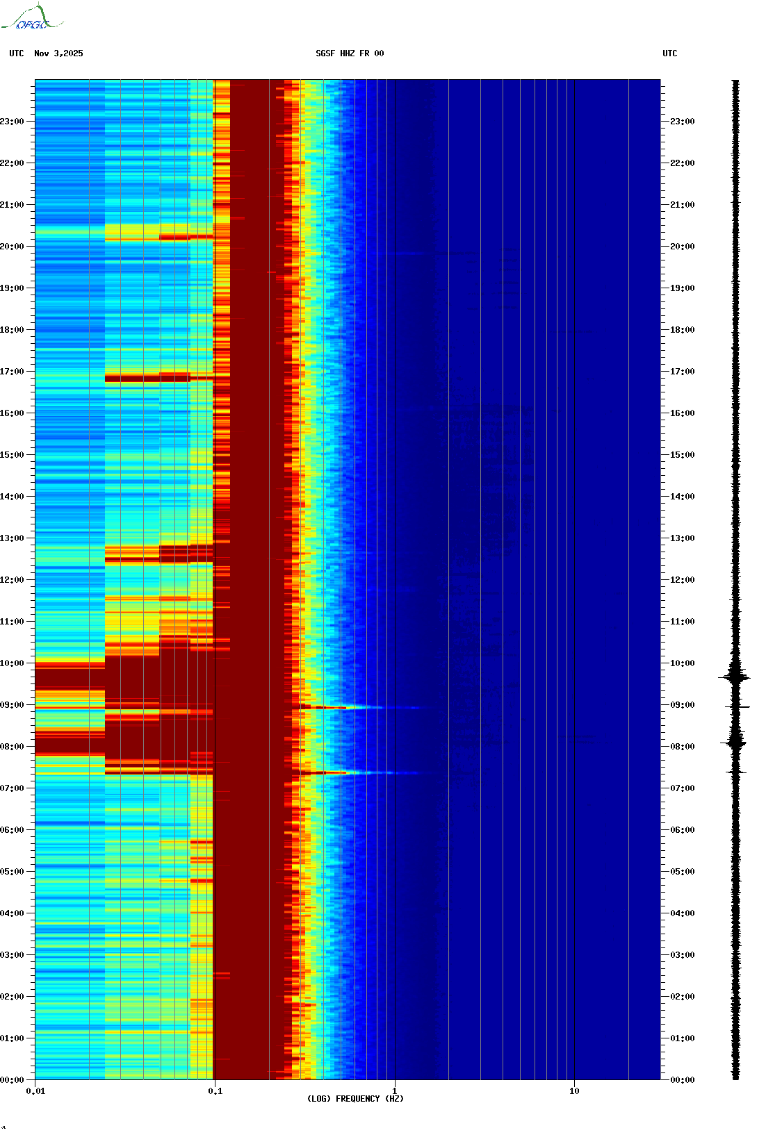 Spectrogrammes du Réseau Sismologique Auvergne-Charentes