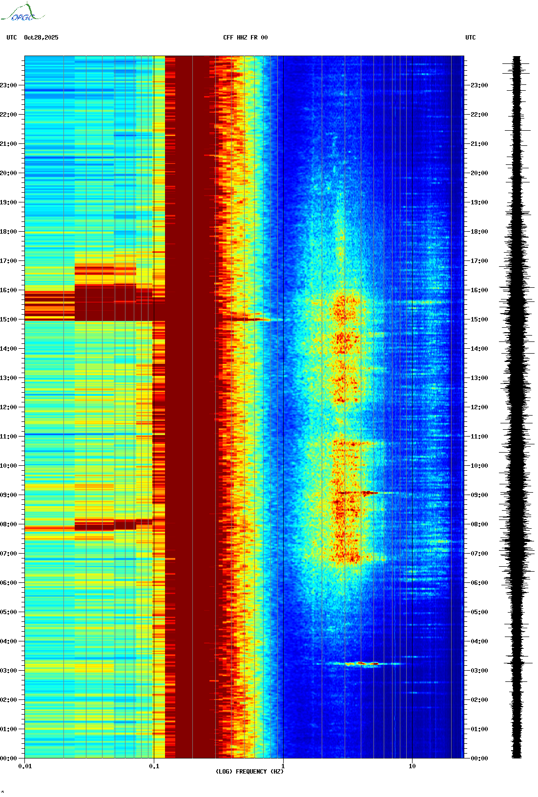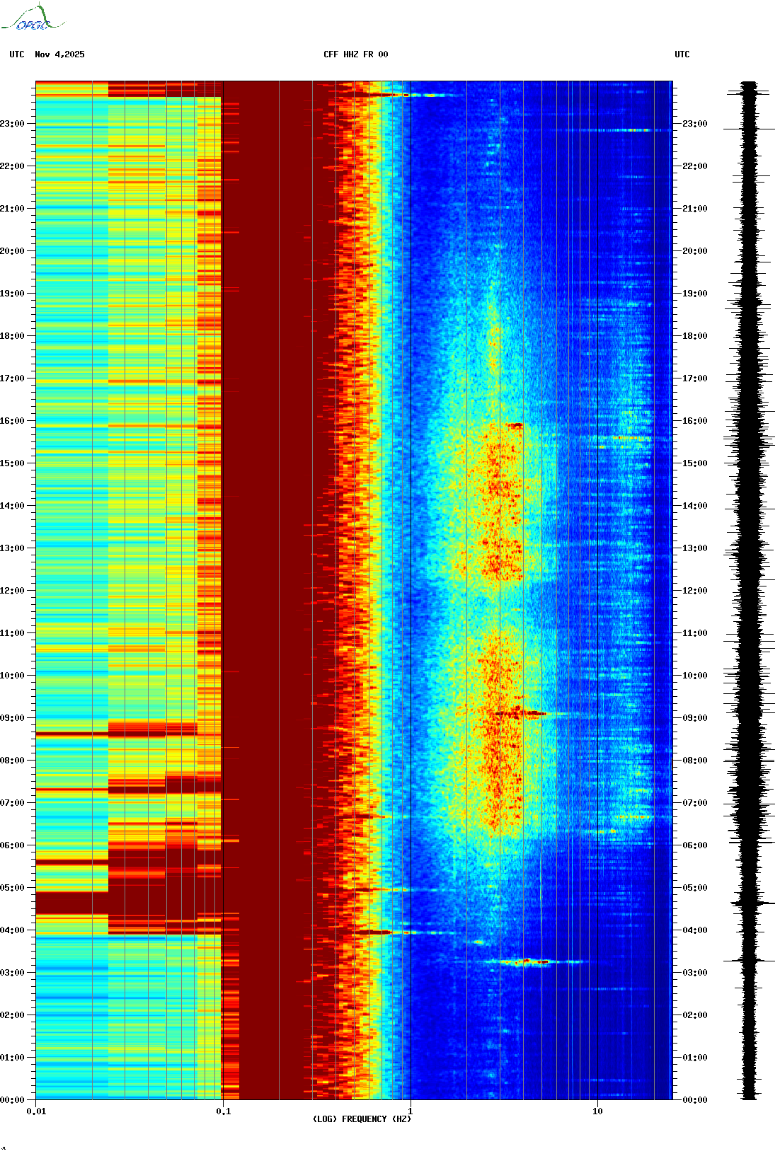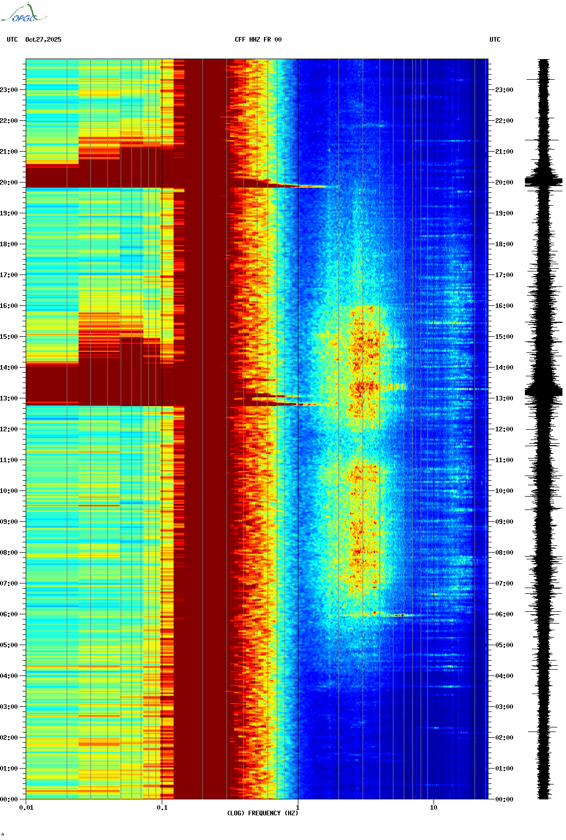 Spectrogrammes du Réseau Sismologique Auvergne-Charentes