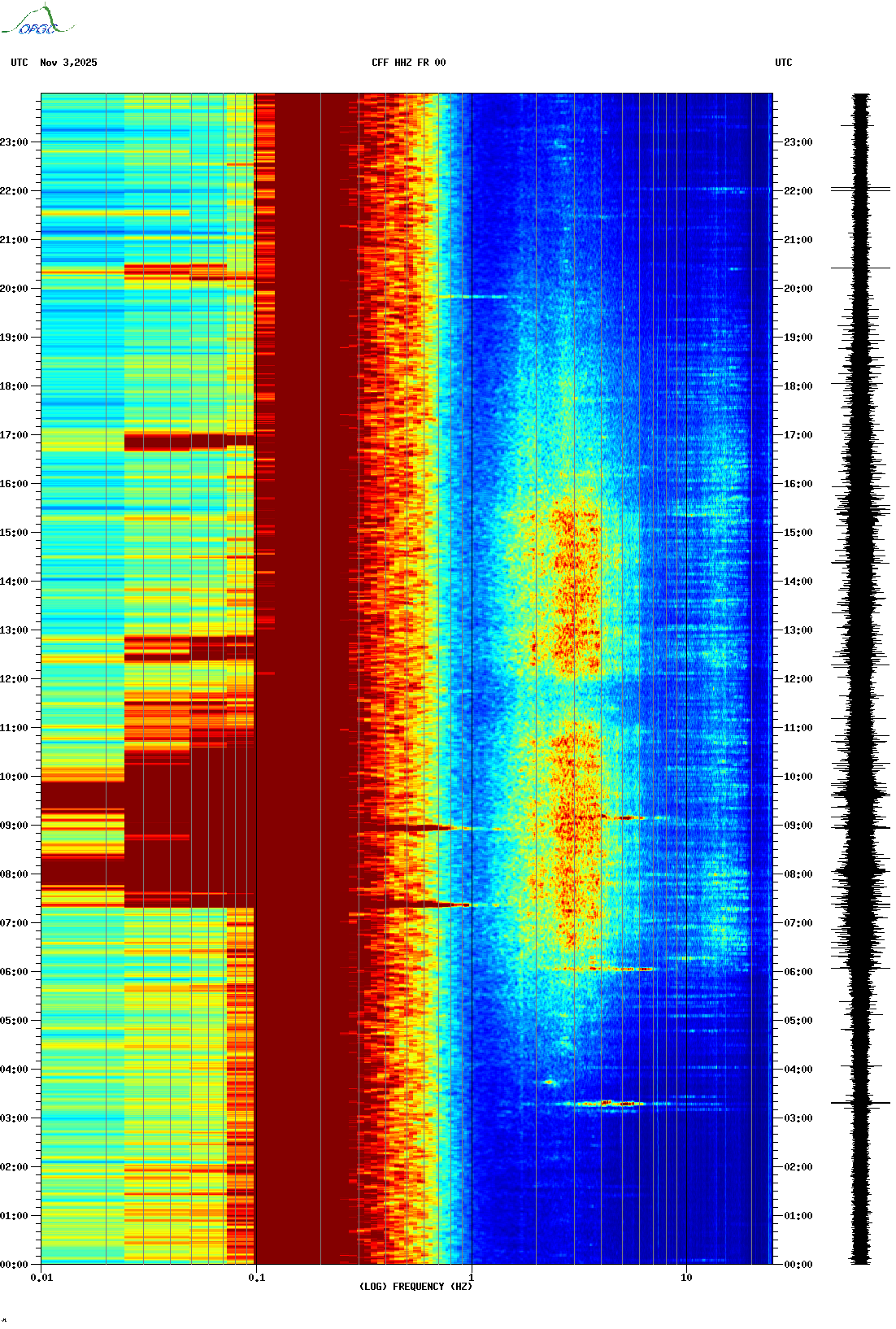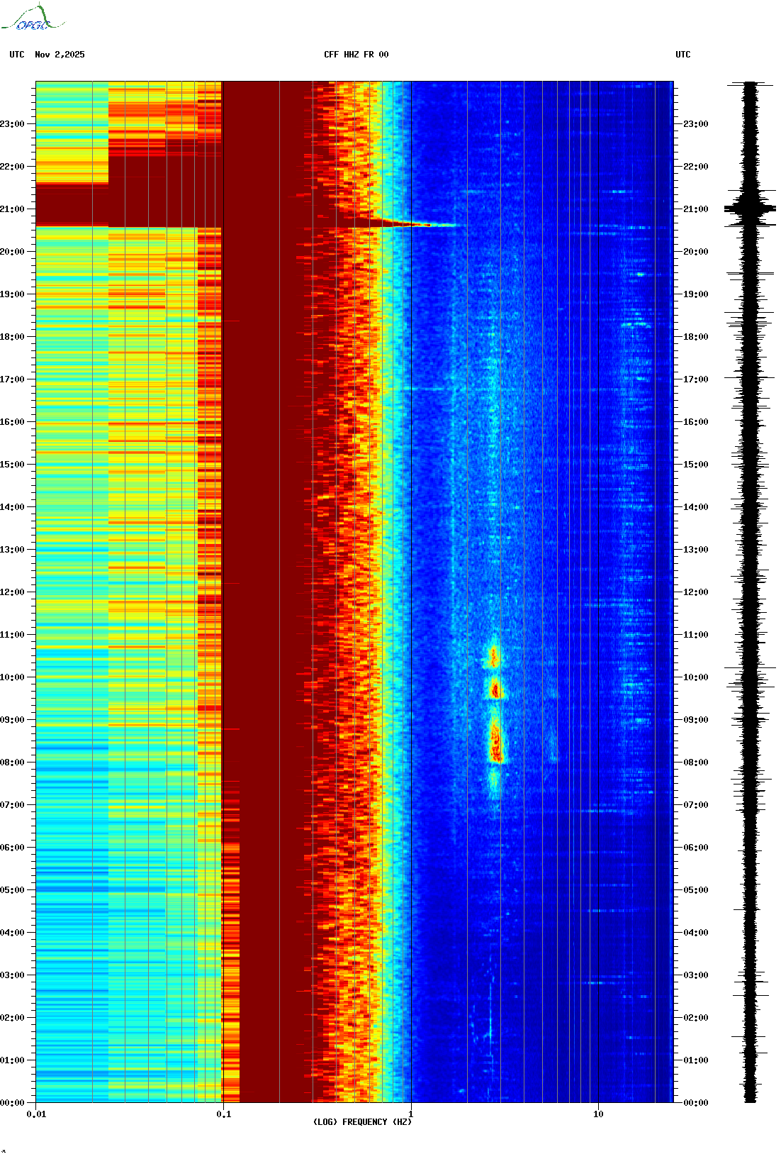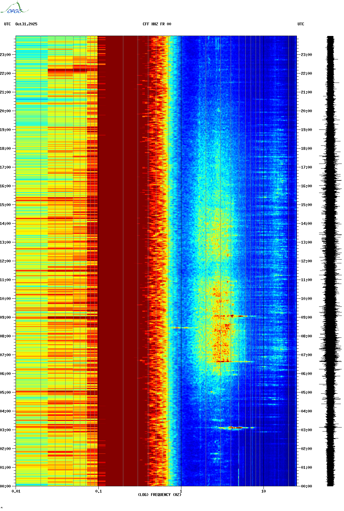 Spectrogrammes du Réseau Sismologique Auvergne-Charentes