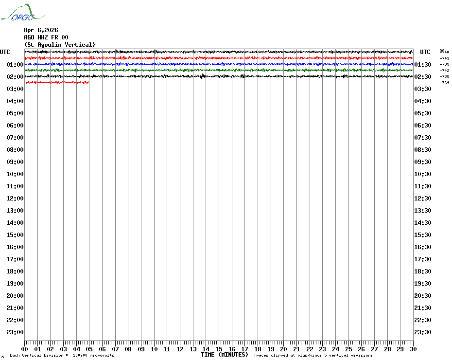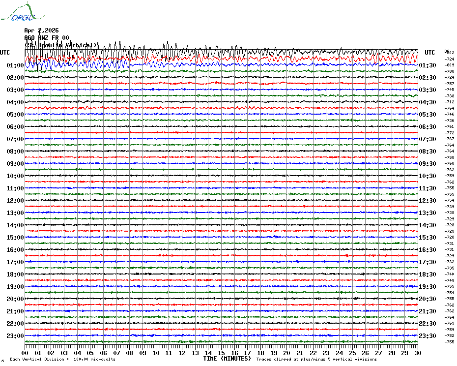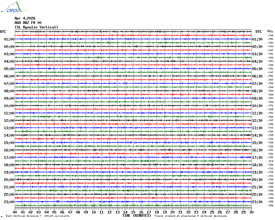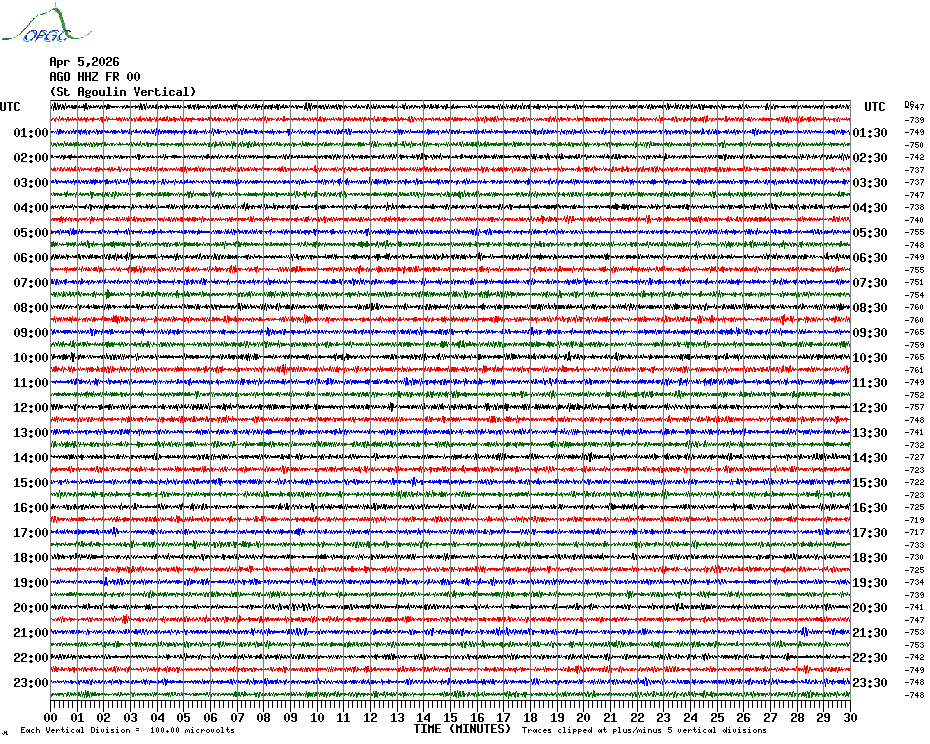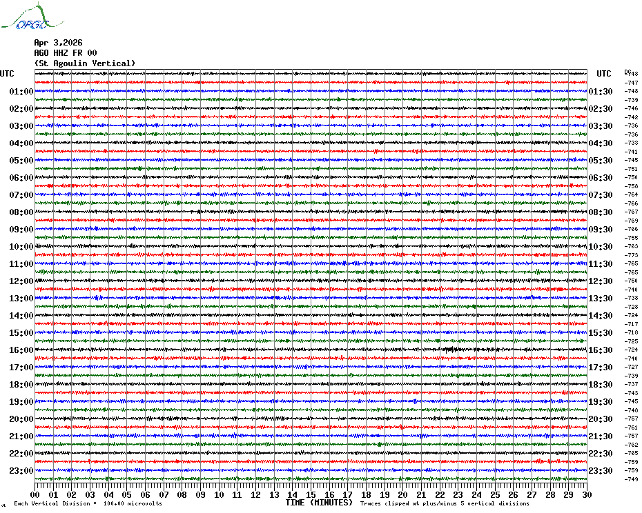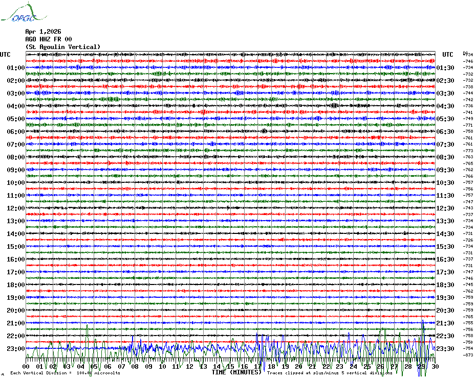 Sismogrammes du Réseau Sismologique Auvergne par fenêtre de 24h