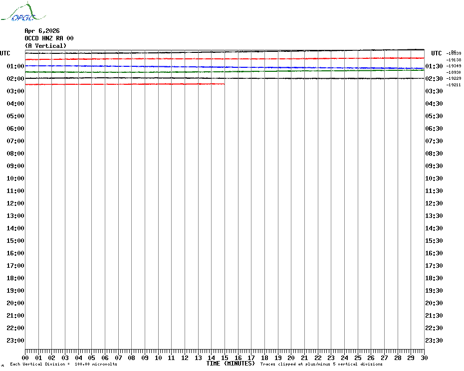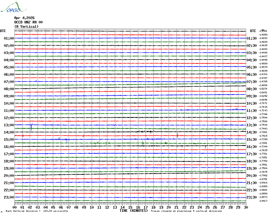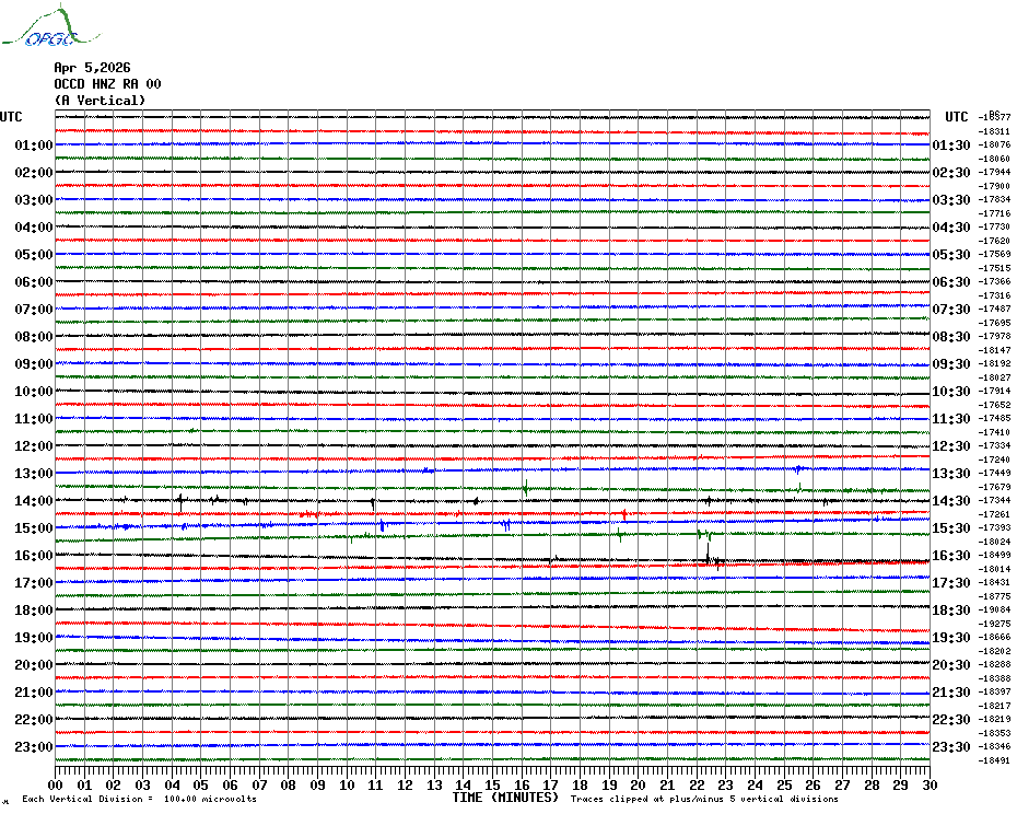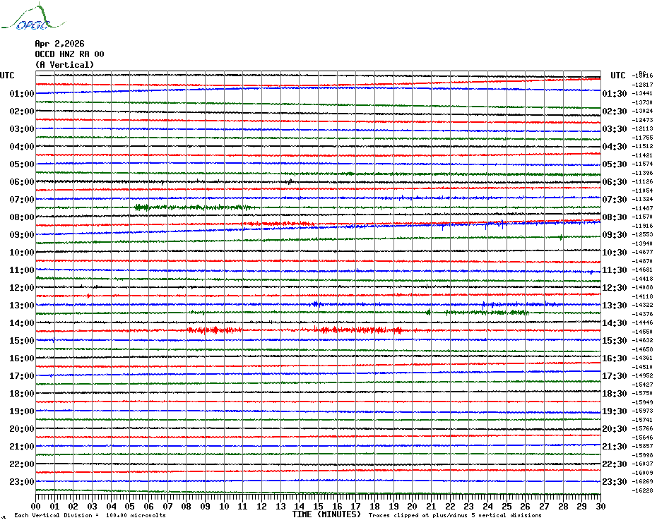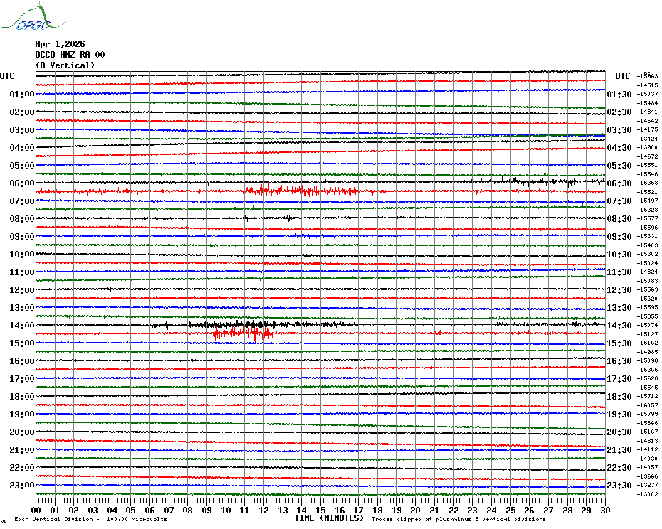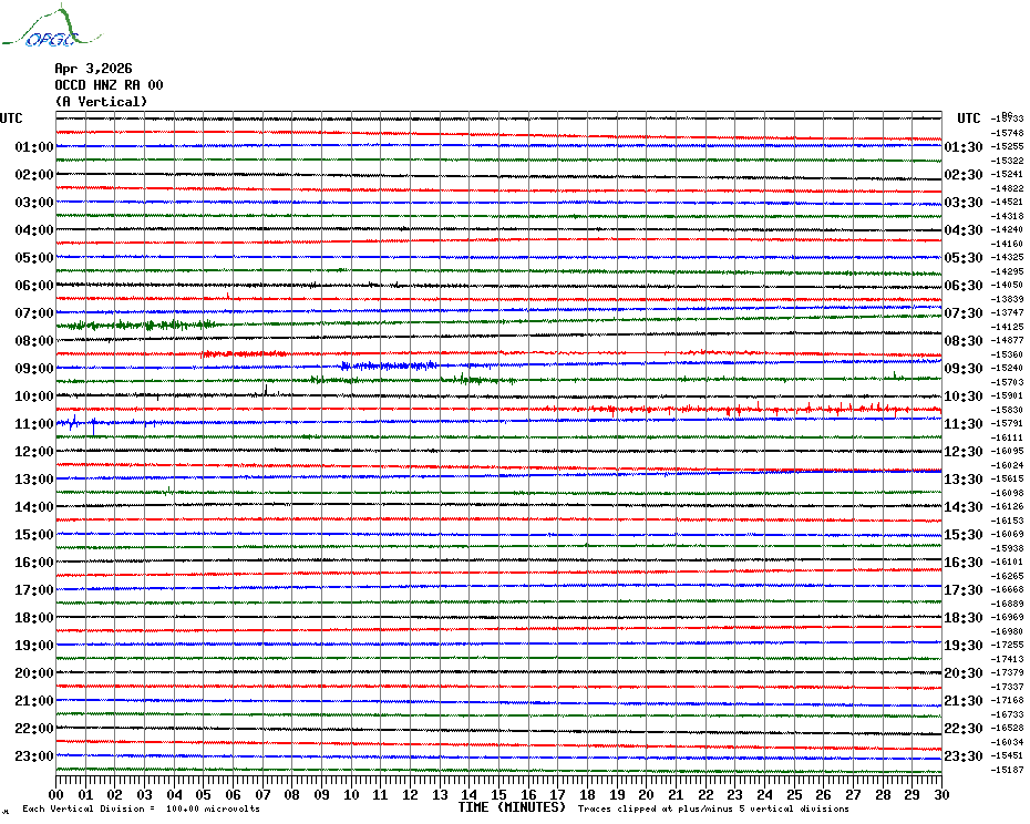 Sismogrammes du Réseau Sismologique Auvergne par fenêtre de 24h