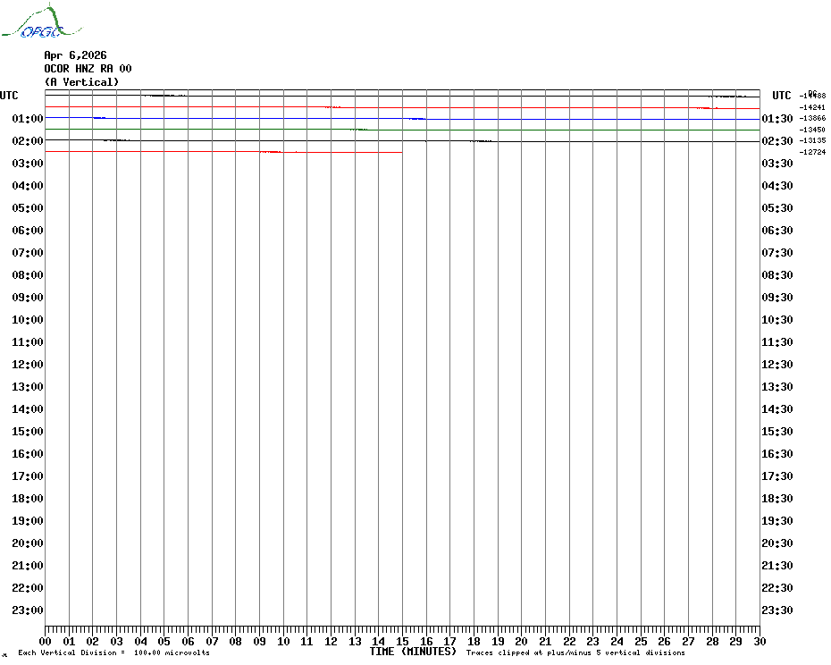 Sismogrammes du Réseau Sismologique Auvergne par fenêtre de 24h
