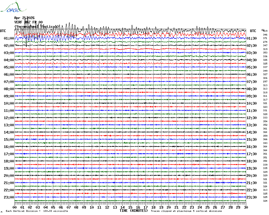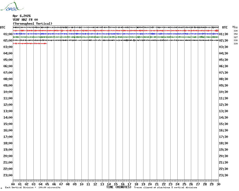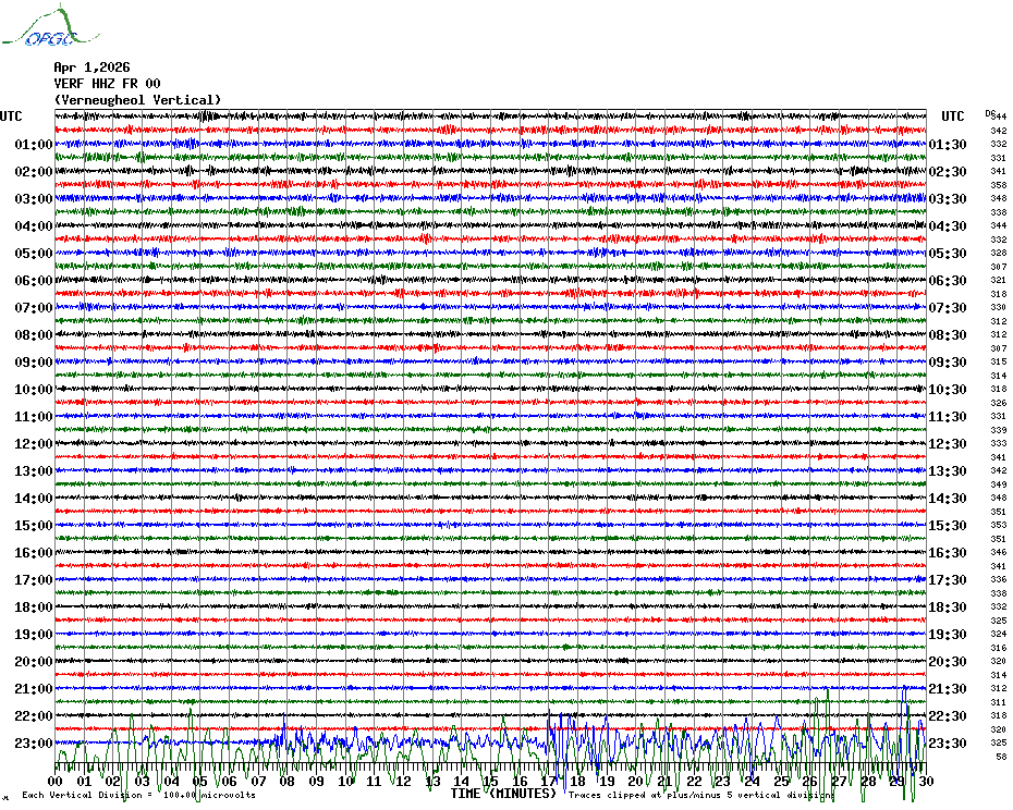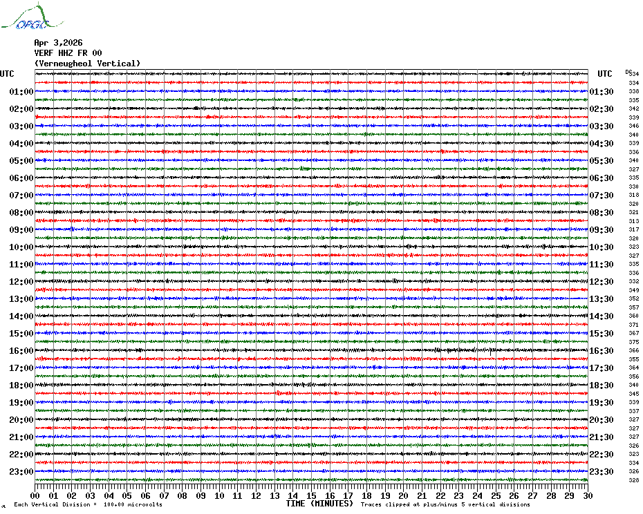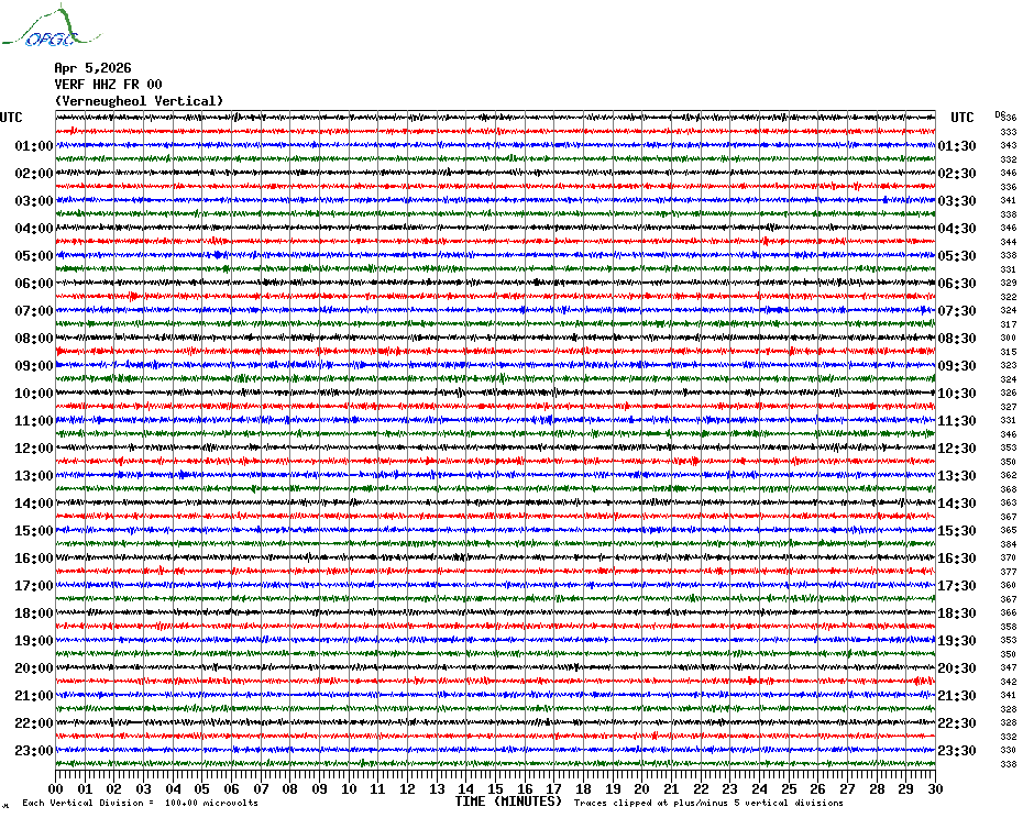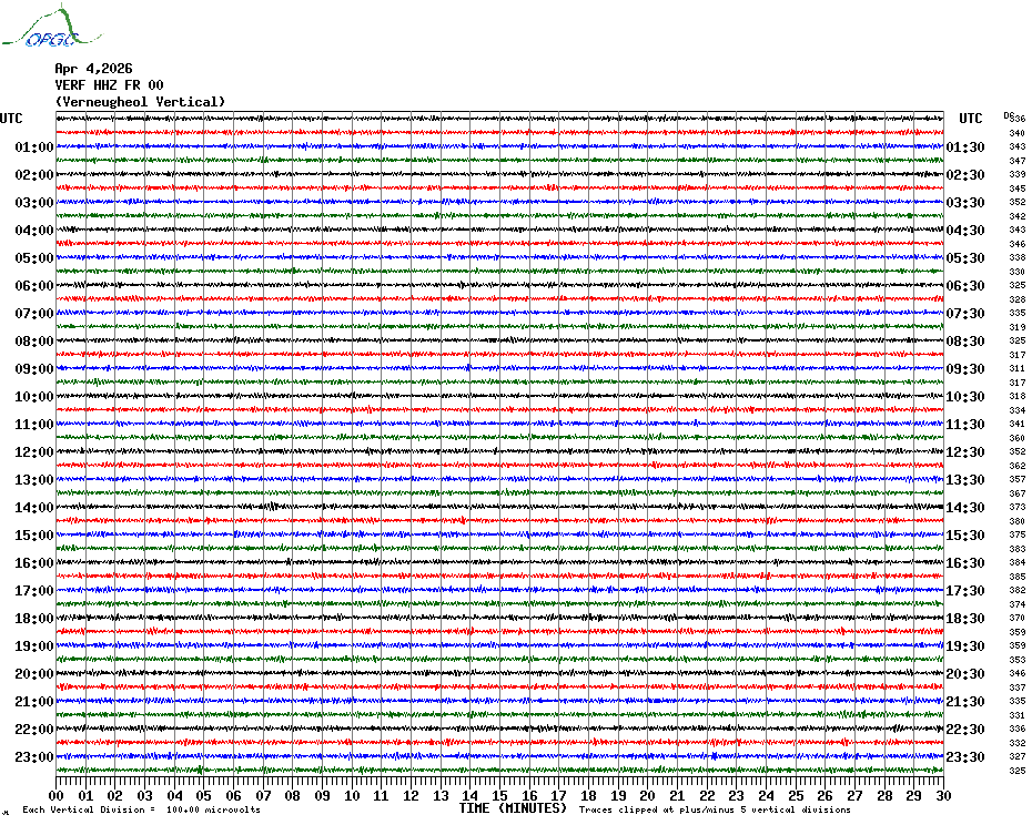 Sismogrammes du Réseau Sismologique Auvergne par fenêtre de 24h