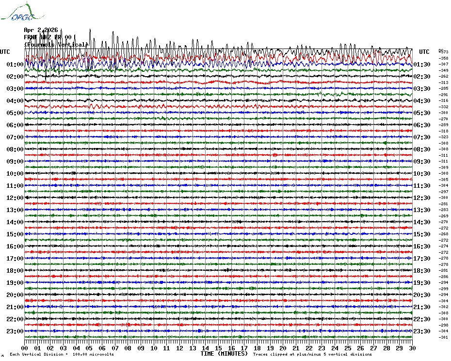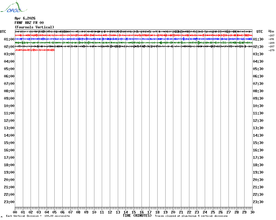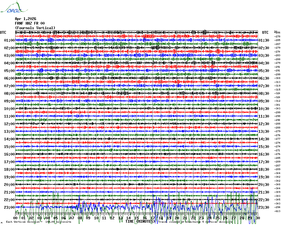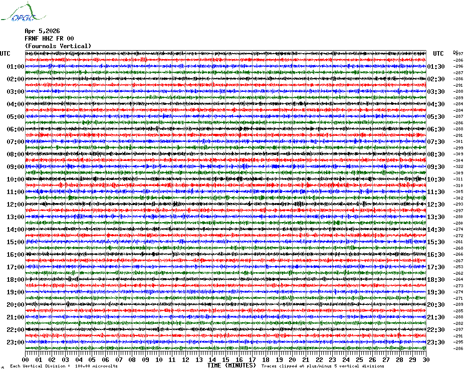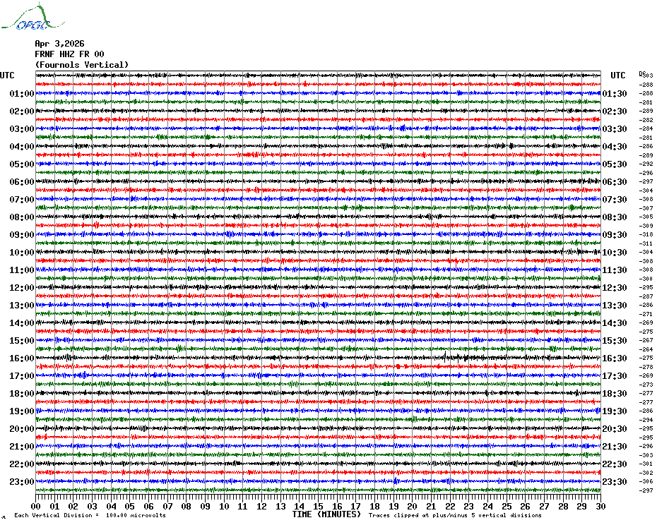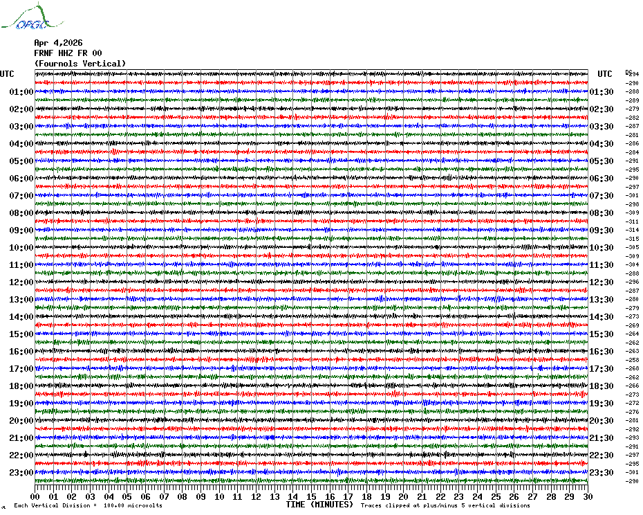 Sismogrammes du Réseau Sismologique Auvergne par fenêtre de 24h