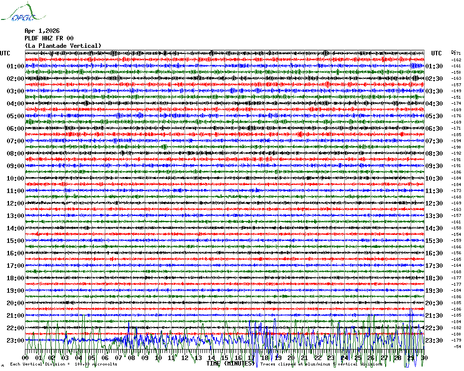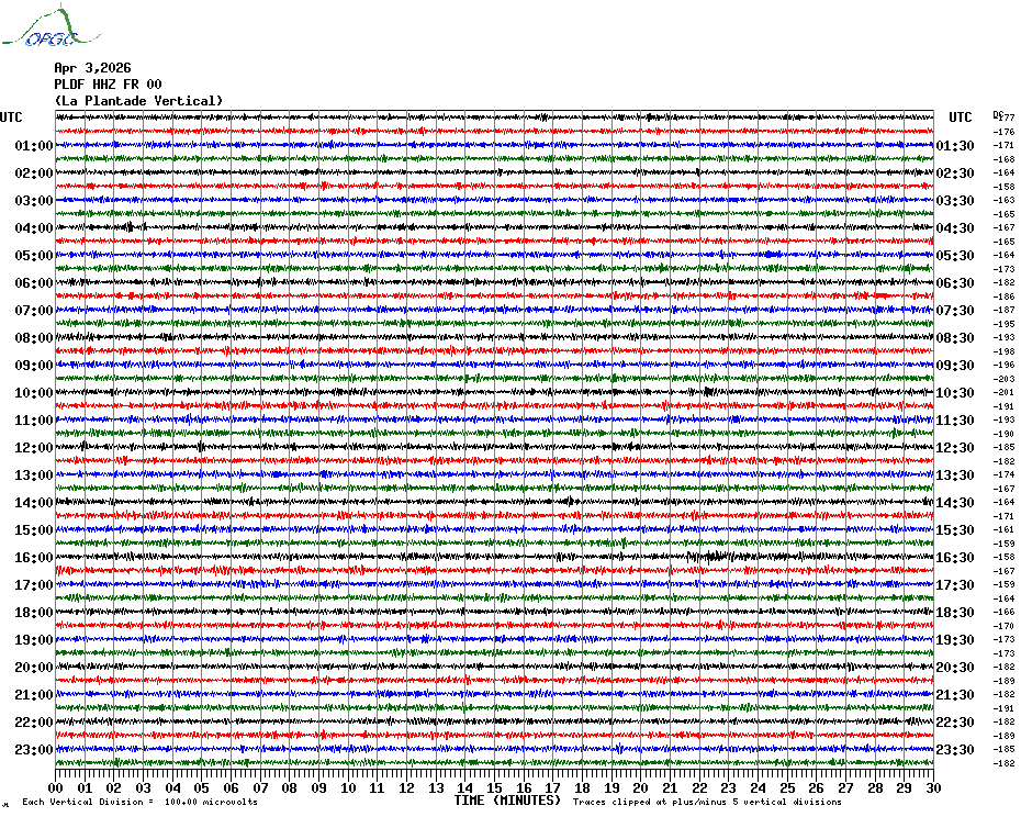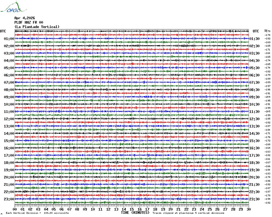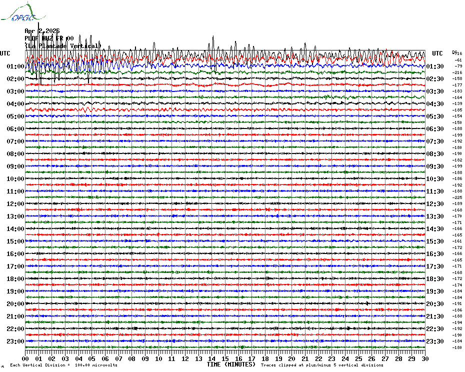 Sismogrammes du Réseau Sismologique Auvergne par fenêtre de 24h