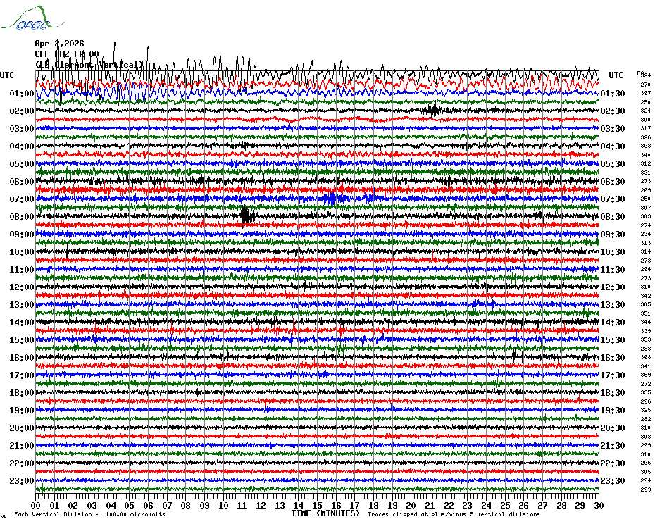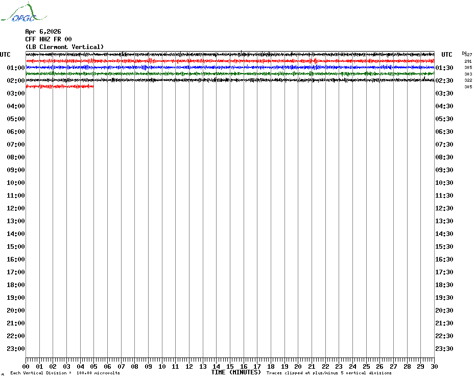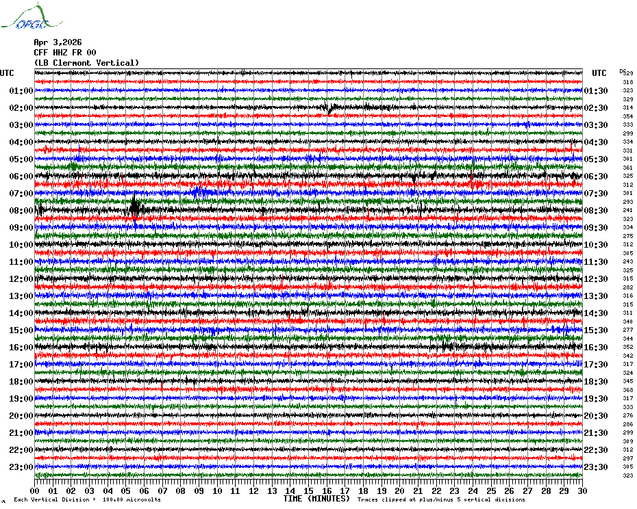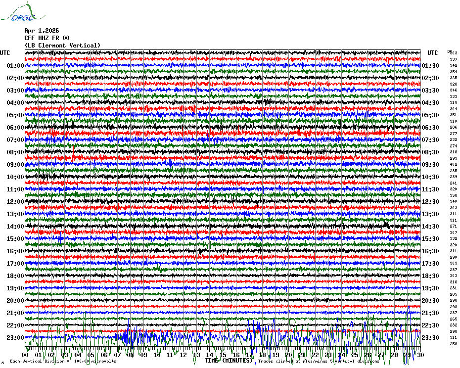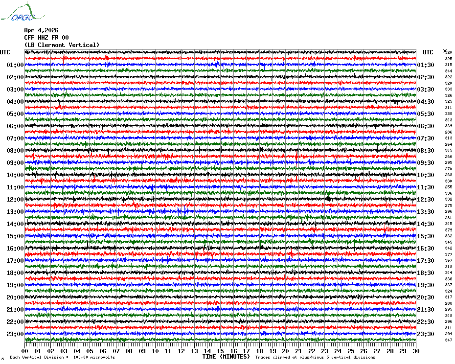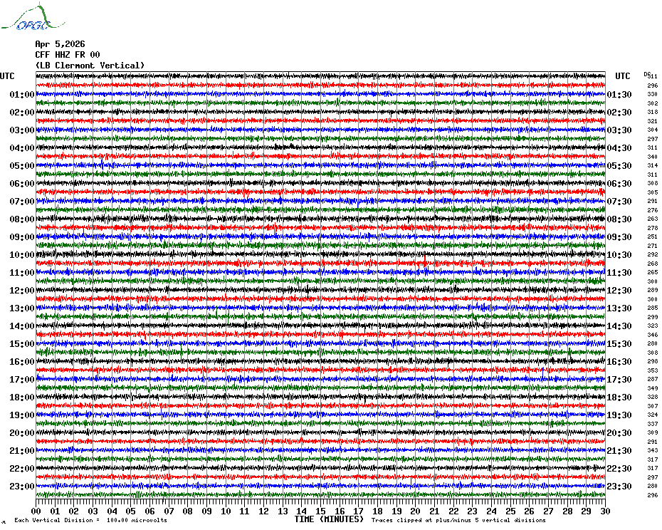 Sismogrammes du Réseau Sismologique Auvergne par fenêtre de 24h