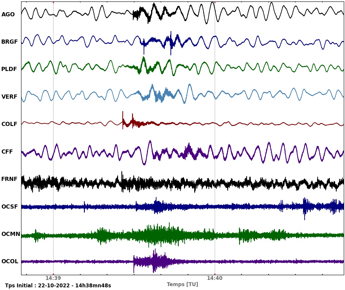 Seisme du 22/10/2022 à 14:39 (Tu) Localisation ReNass : 4.25 km 'ENE' MURAT-LE-QUAIRE (63 - 475 hbts)
