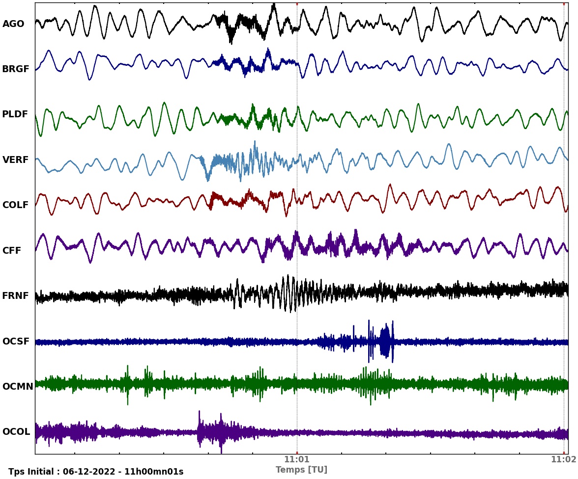 Seisme du 06/12/2022 à 11:00 (Tu) Localisation ReNass : 1.34 km 'ESE' CHADELEUF (63 - 387 hbts)
