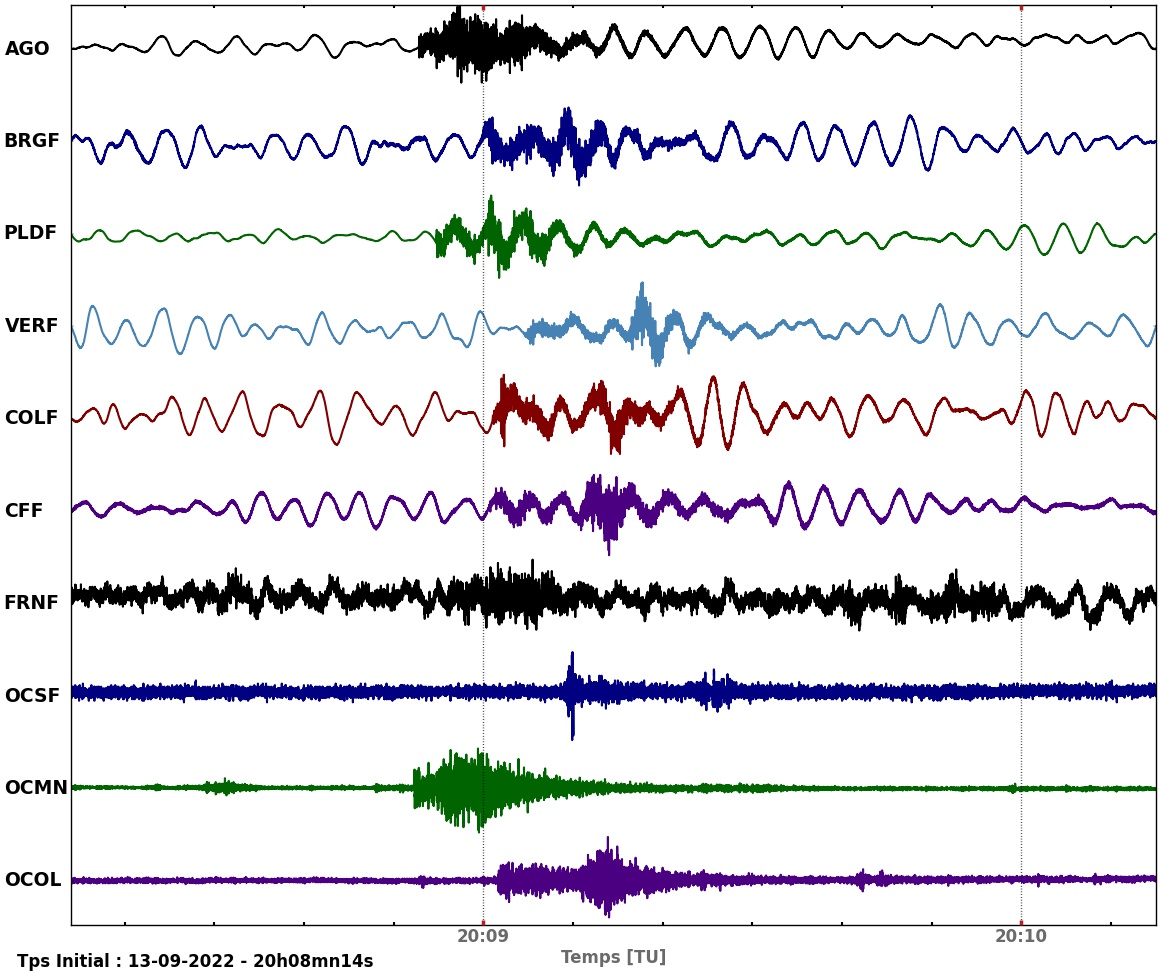 Seisme du 13/09/2022 à 20:08 (Tu) Localisation ReNass : 1.47 km 'S' YOUX (63 - 1034 hbts)