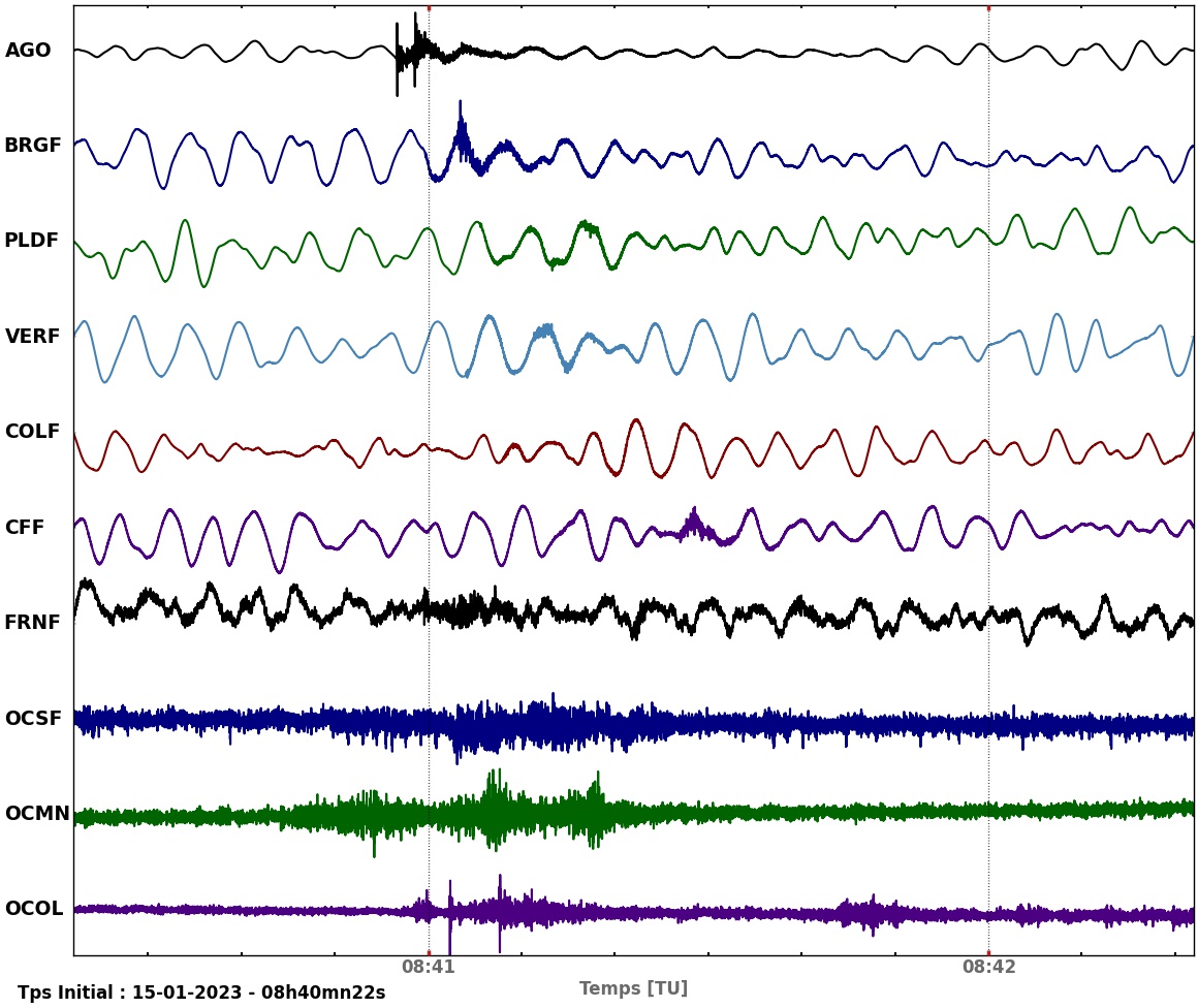 Seisme du 15/01/2023 à 08:40 (Tu) Localisation ReNass : 1.61 km 'E' AUBIAT (63 - 883 hbts)