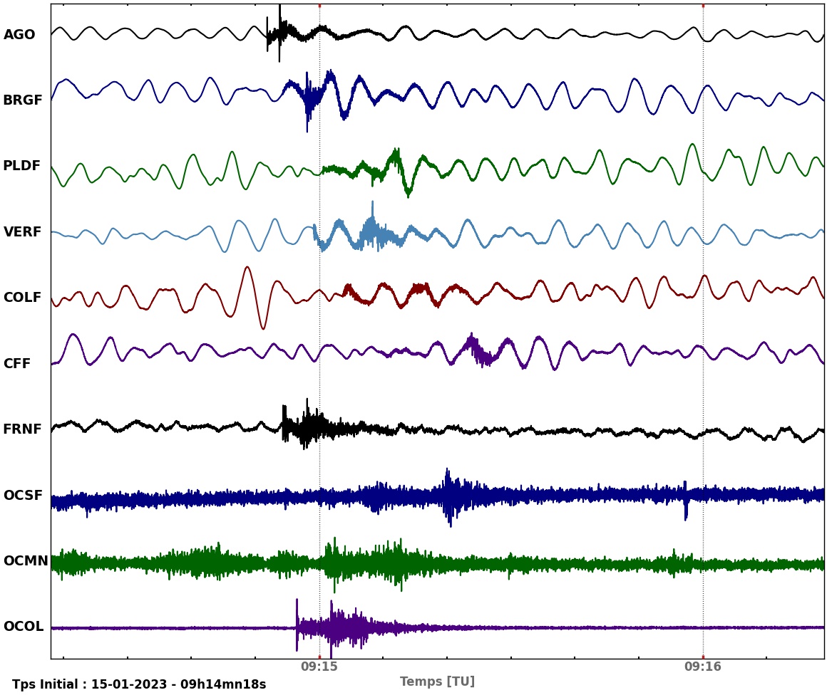 Seisme du 15/01/2023 à 09:14 (Tu) Localisation ReNass : 1.09 km 'ESE' CHAPTUZAT (63 - 437 hbts)