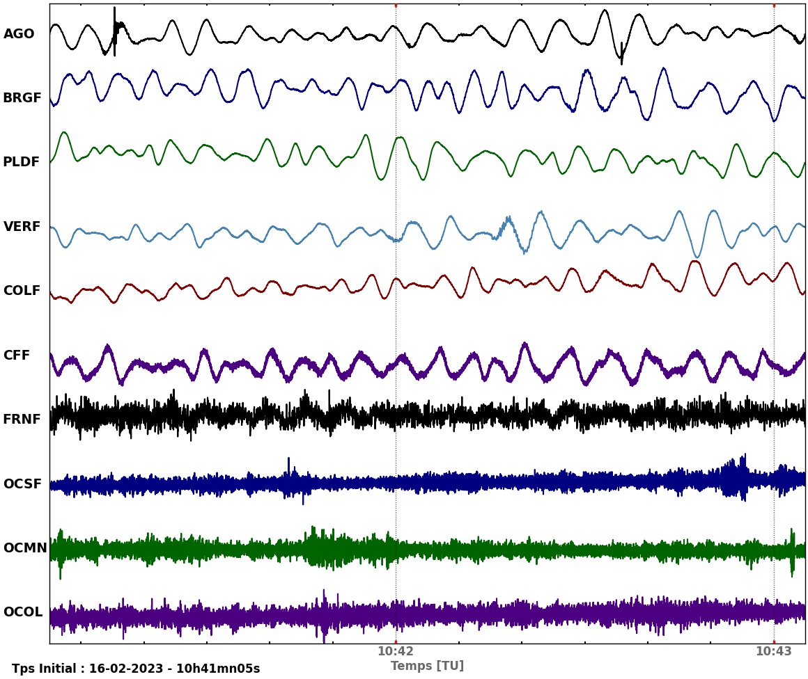 Seisme du 16/02/2023 à 10:41 (Tu) Localisation ReNass : 1.23 km 'SSE' LE TEIL (7 - 8010 hbts)
