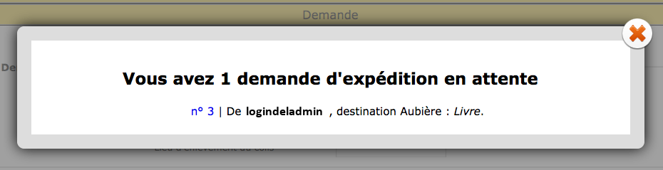 Les gestionnaires peuvent voir les expéditions en attente de validation sous forme de popup. Ce popup apparaît lorsque le gestionnaire arrive sur le module EXPEDITIONS