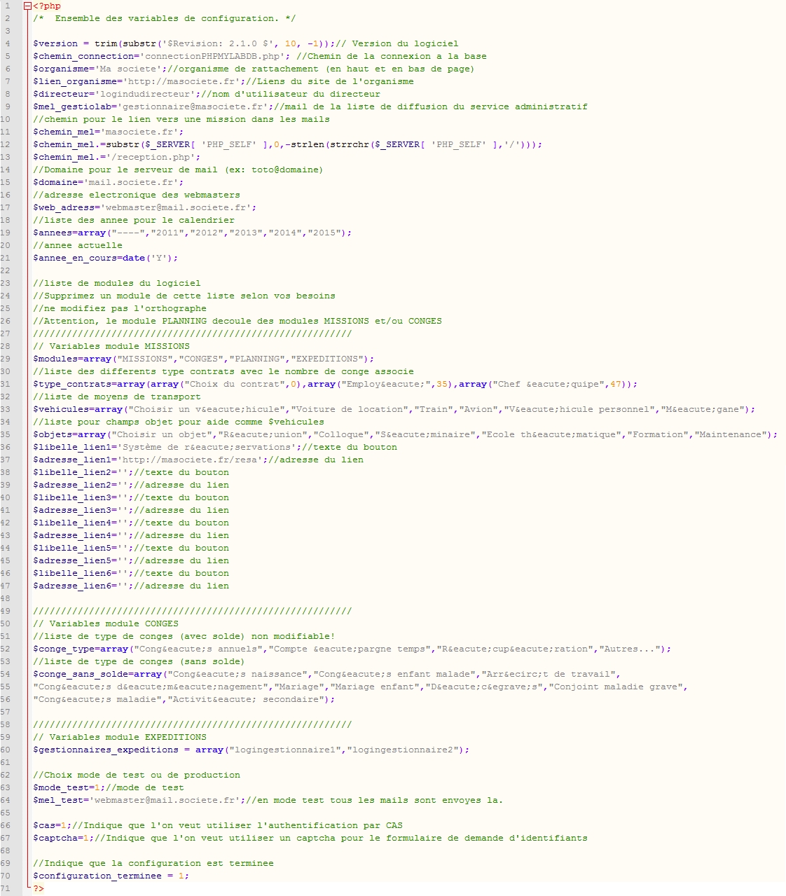 Le fichier "config.php" permet de paramétrer le logiciel.