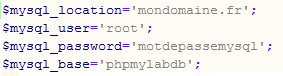 Les fichiers "connectionPHPMYLABDB.php" et "config.php" sont générés automatiquement par la procédure d'intallation automatique.